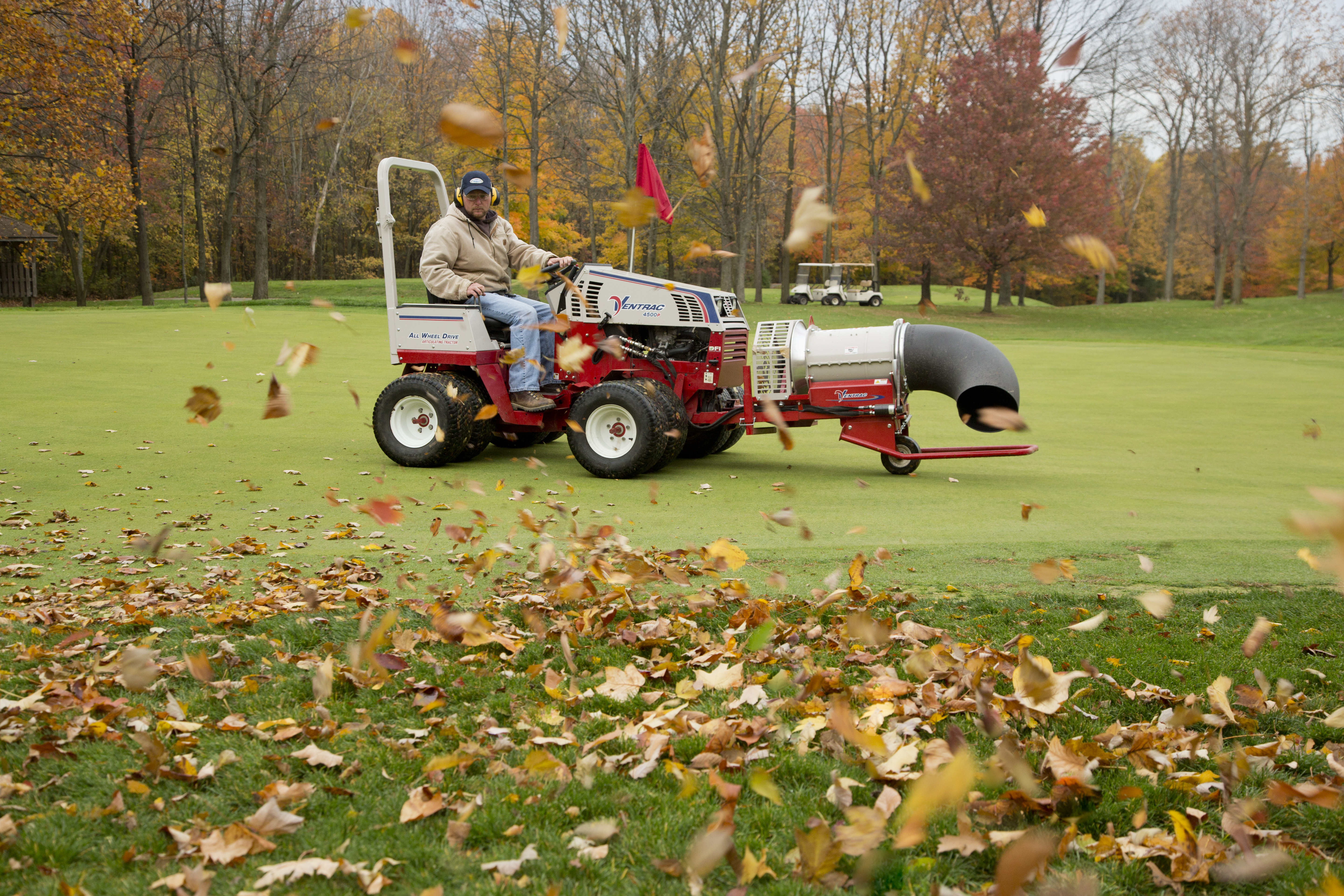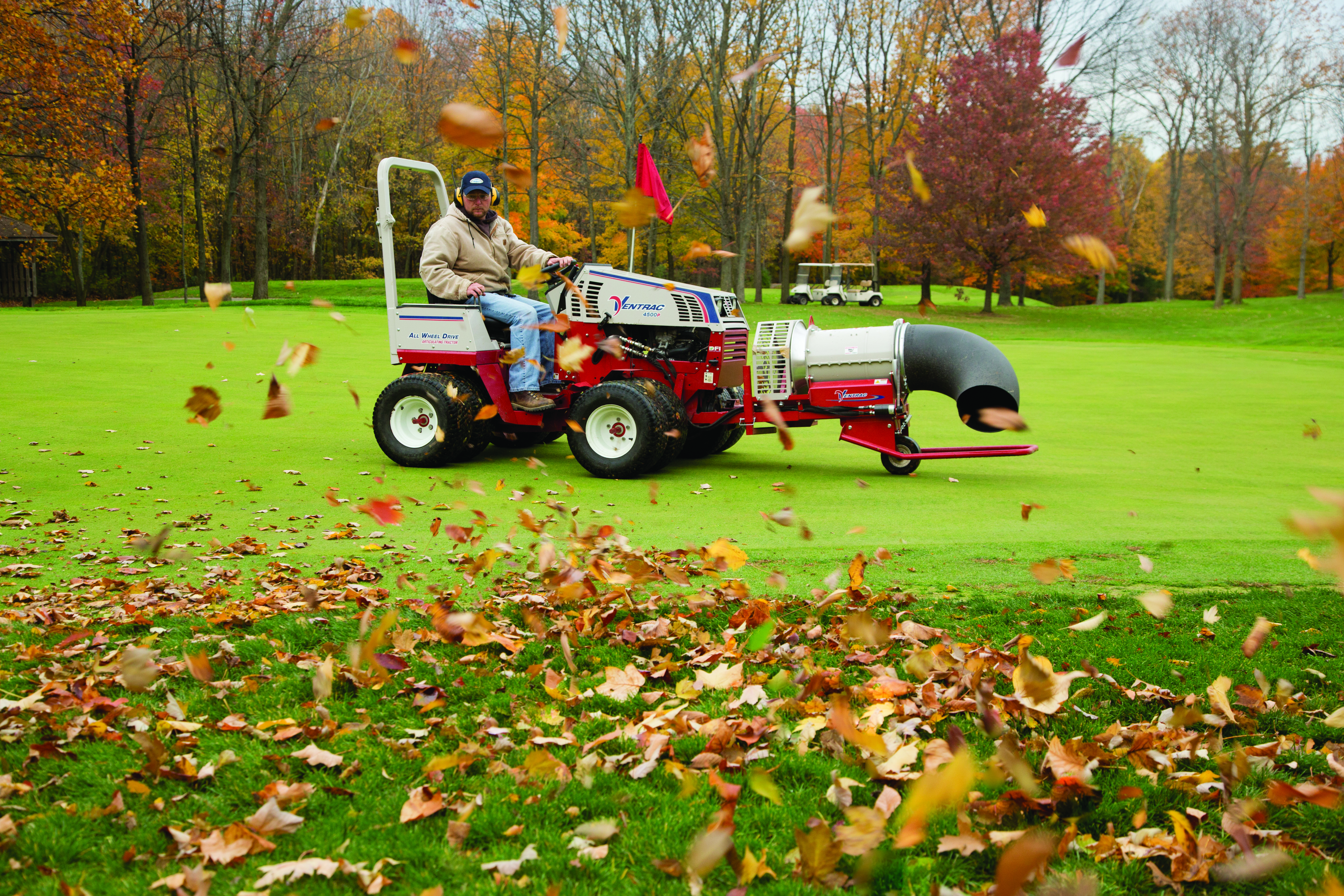 | Description | Golf course maintenance made easy with the Ventrac 4500, shown with optional dual wheels, and Turbine Blower. |