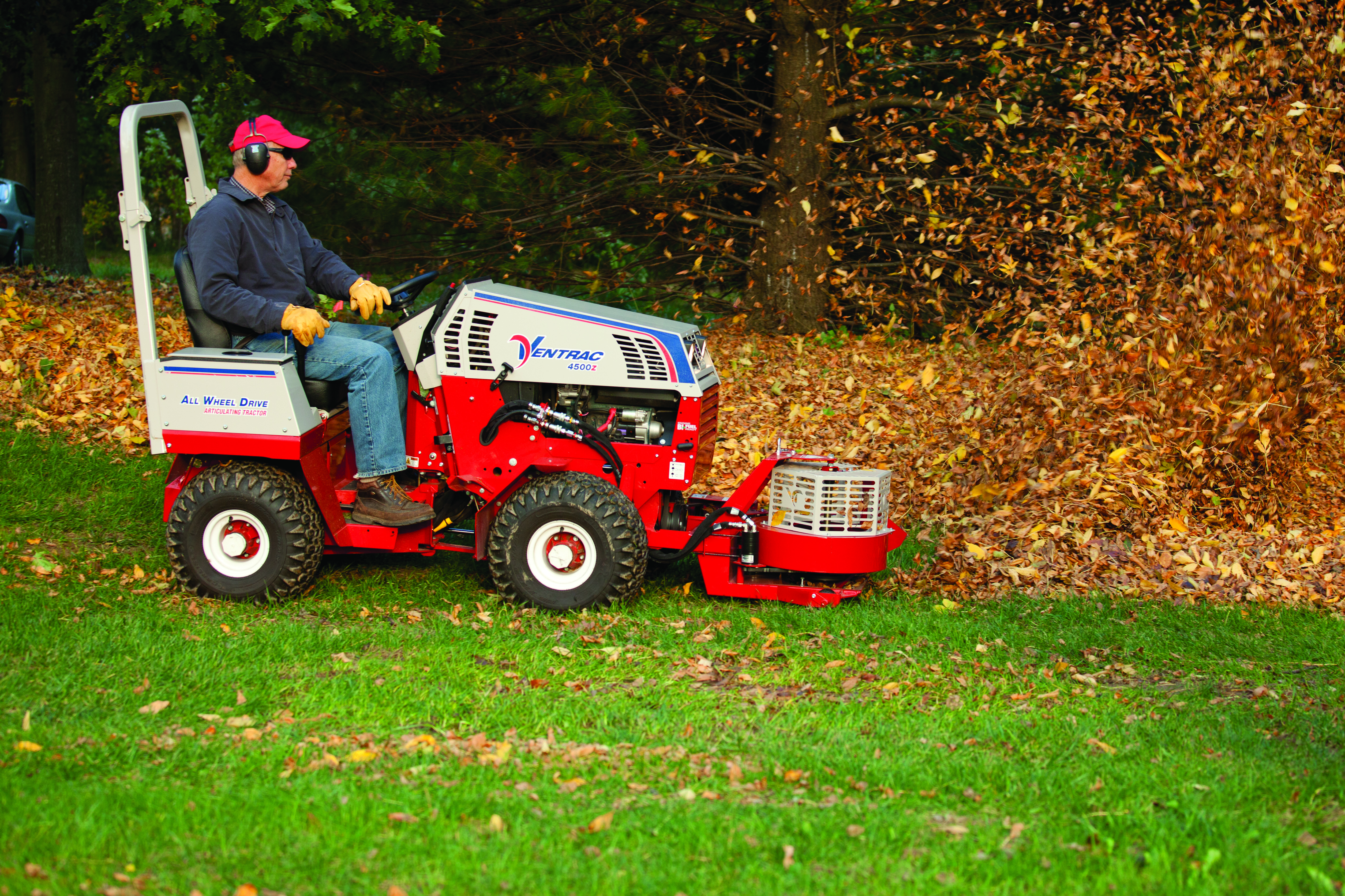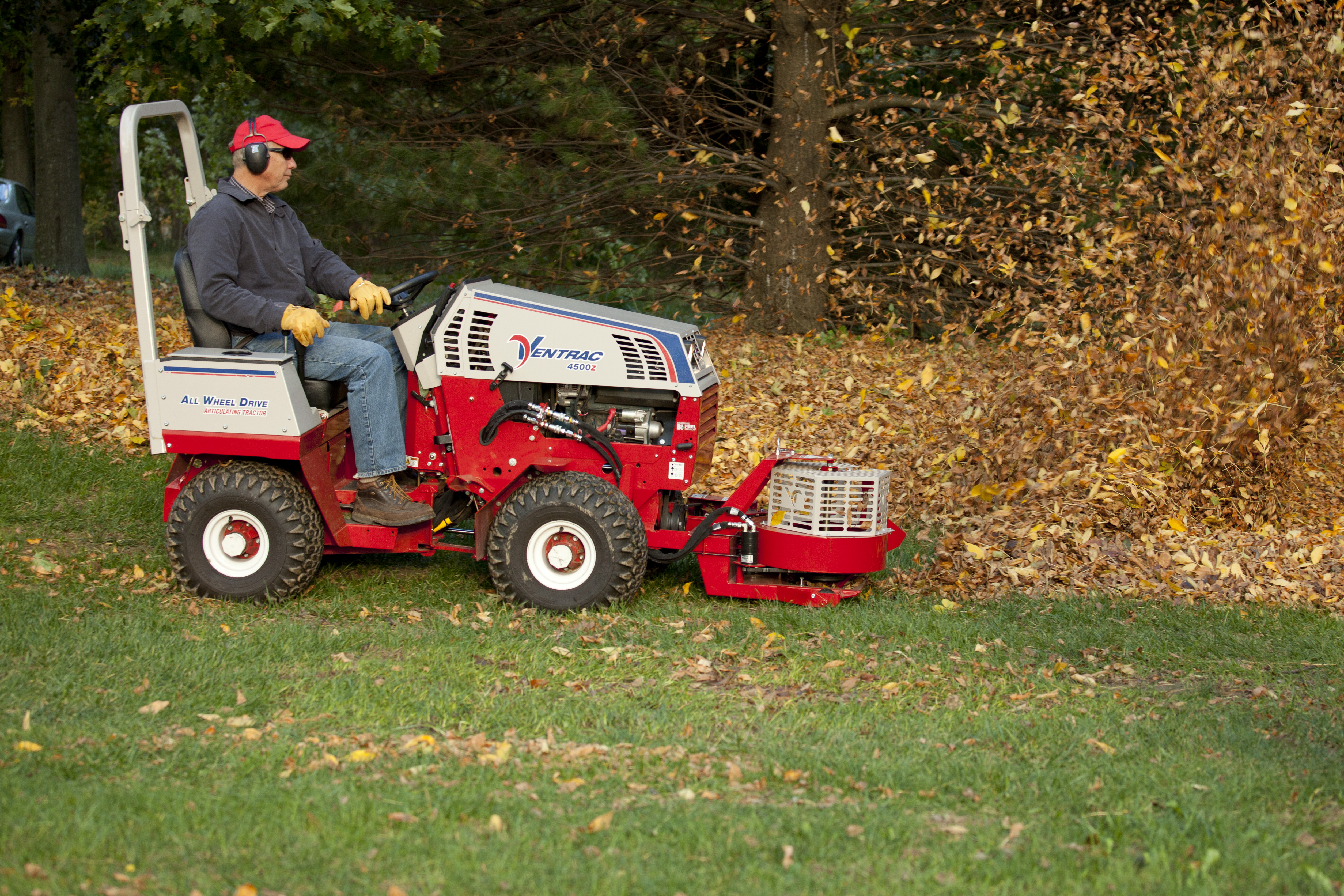 Ventrac 4500Z compact tractor with Power Blower - No more raking leaves for hours on end. The power leaf blower saves time and energy.