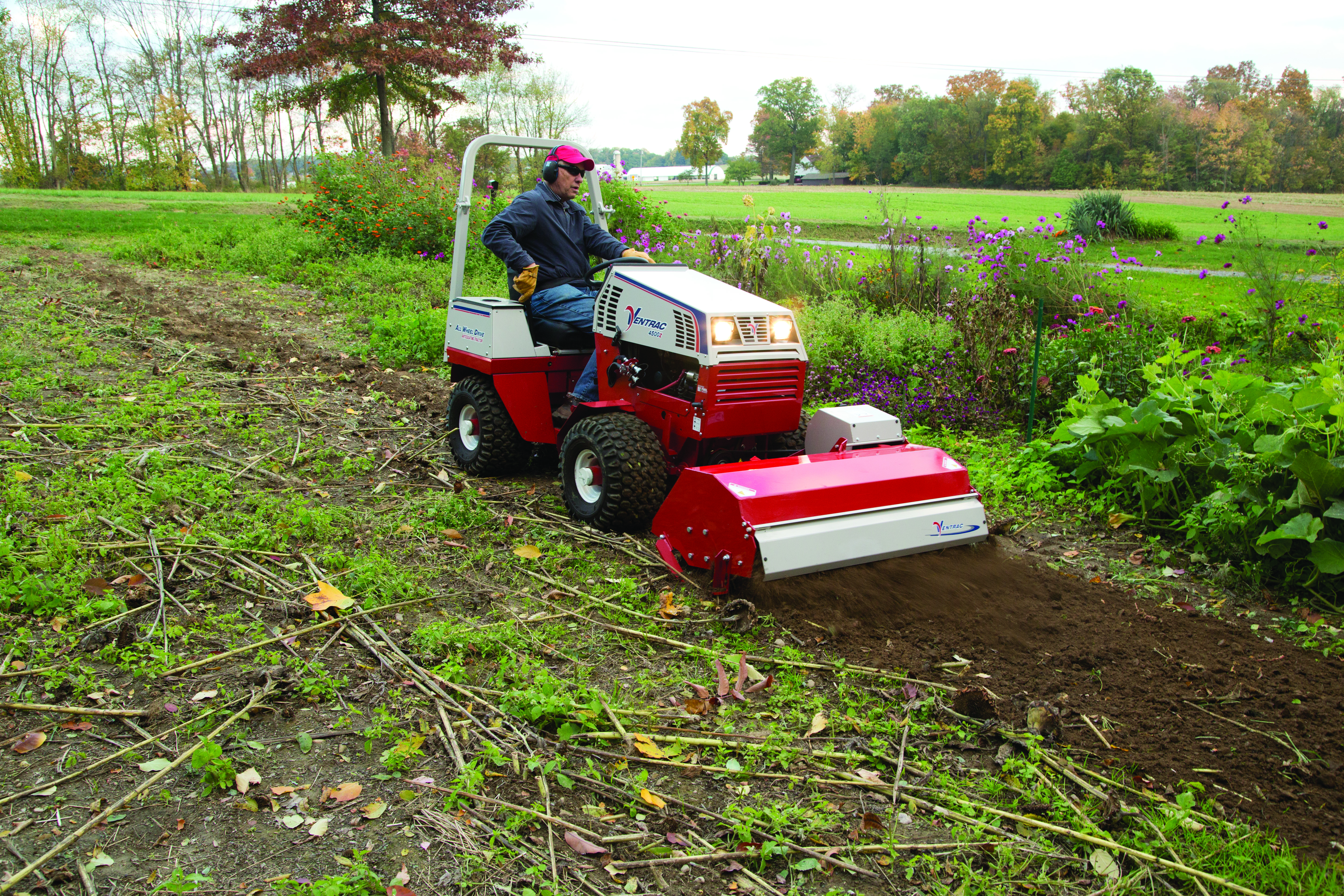 Ventrac 4500Z with Tiller - The Ventrac tractor tiller not only tills dirt but turns under dead vegetation to properly prepare a garden or flower bed.