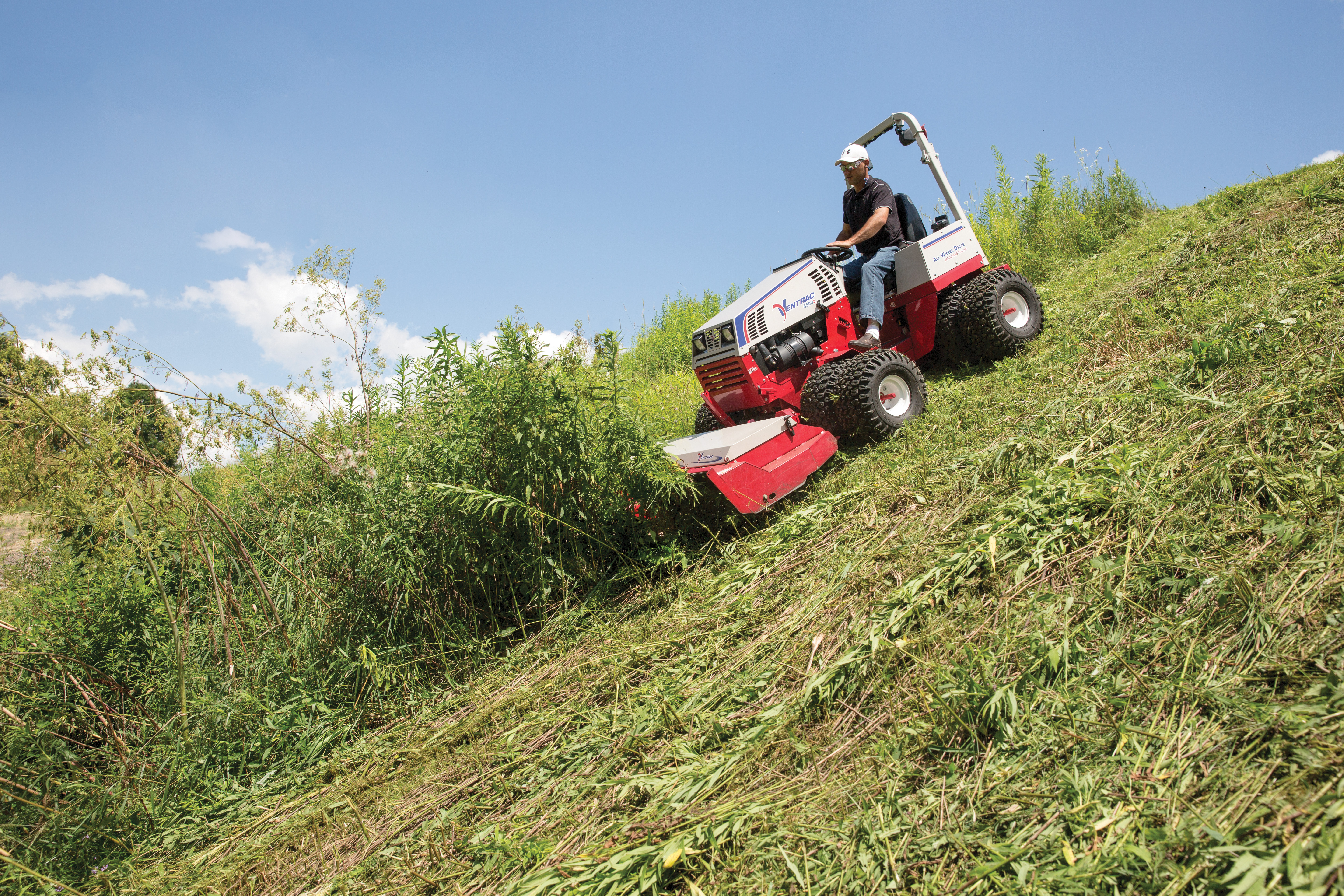 | Description | Zero turn mowers and economy lawn tractors are incapable of safely tackling slope mowing, especially with thick overgrown brush, but the Ventrac 4500 with Tough Cut is designed to perform in such conditions much more safely, perfect for brush mowing on steep slopes. |