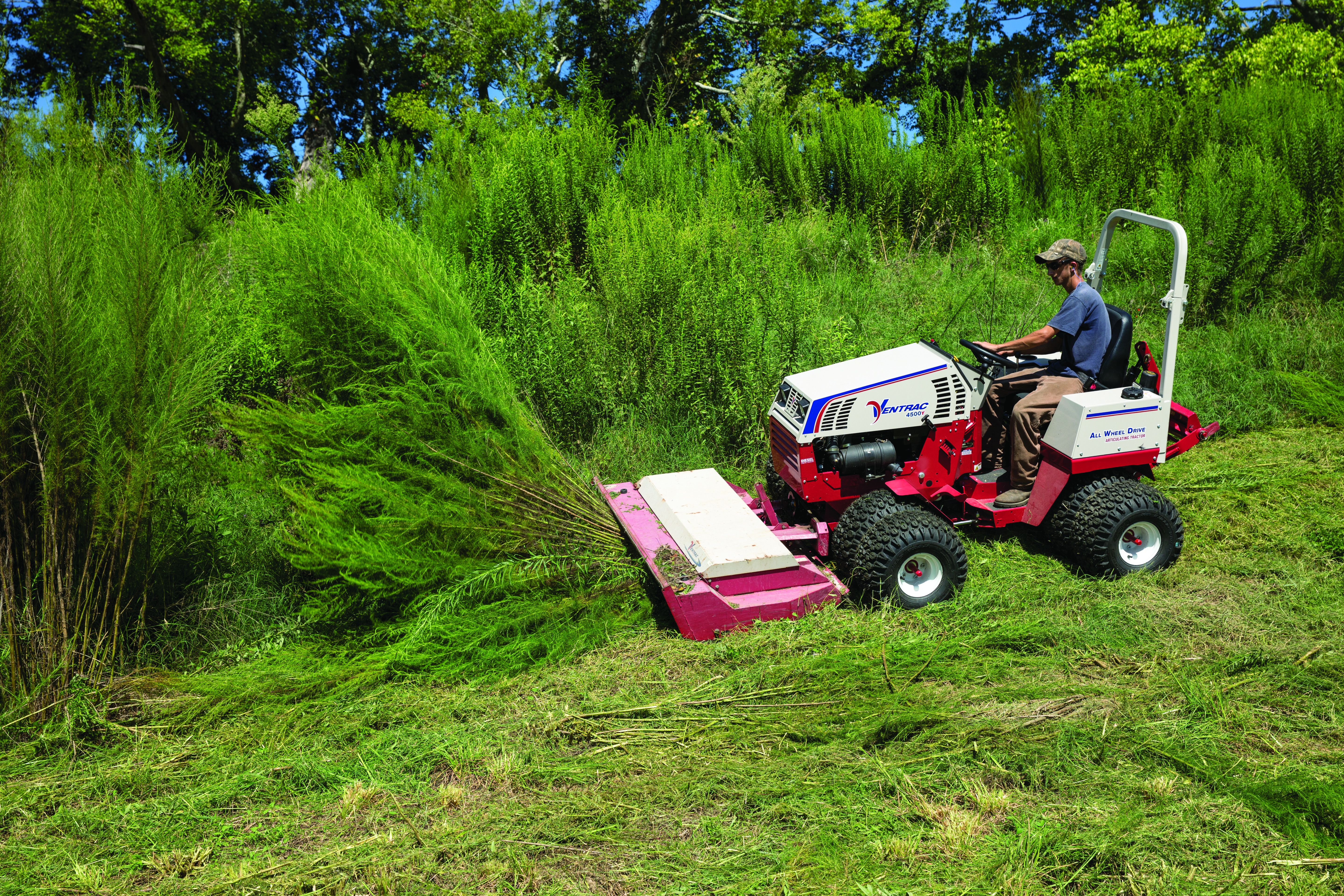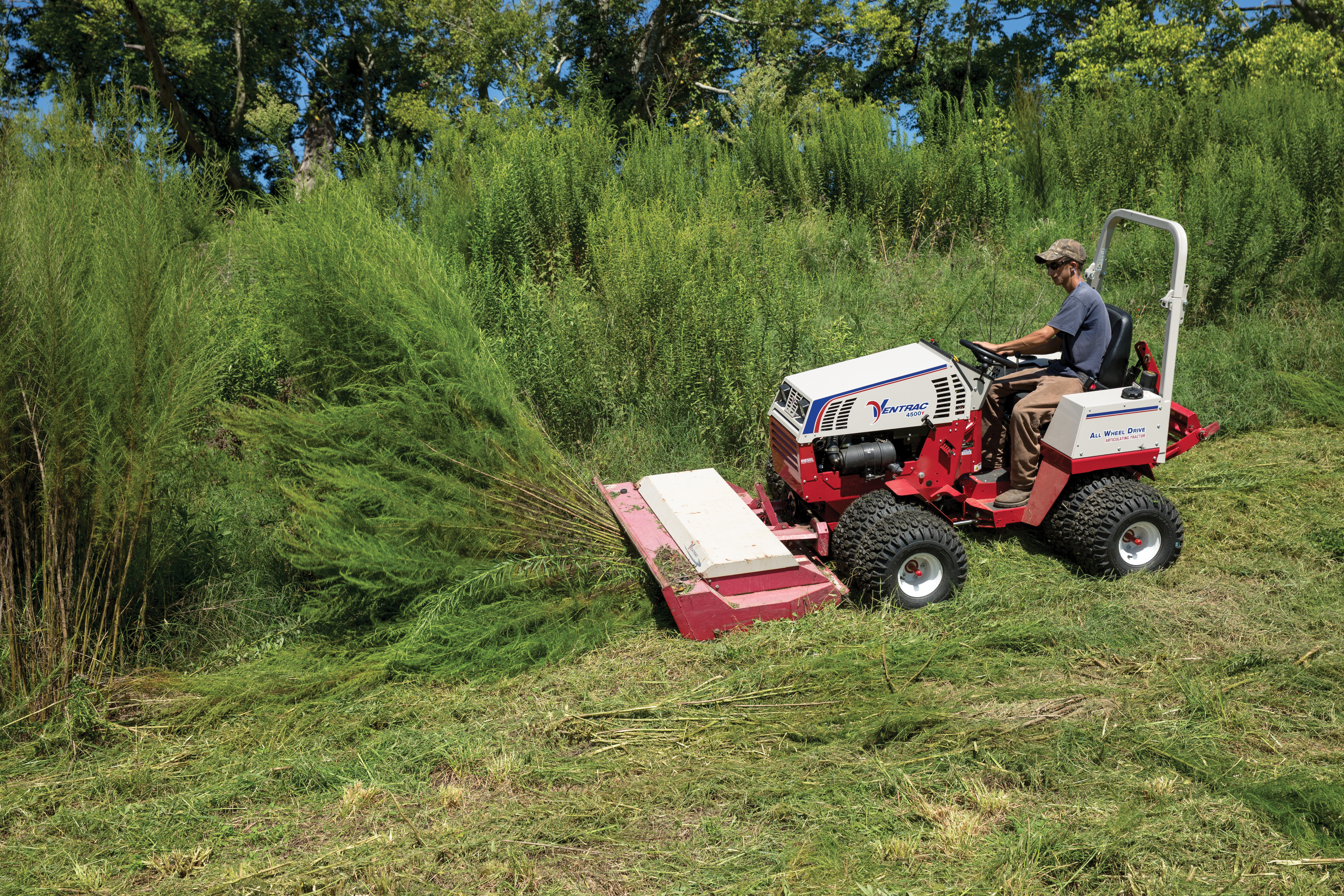 | Description | Small saplings and thick brush are much simpler to conquer using the Tough Cut mower for the Ventrac 4500. Pictured with optional dual wheels. |