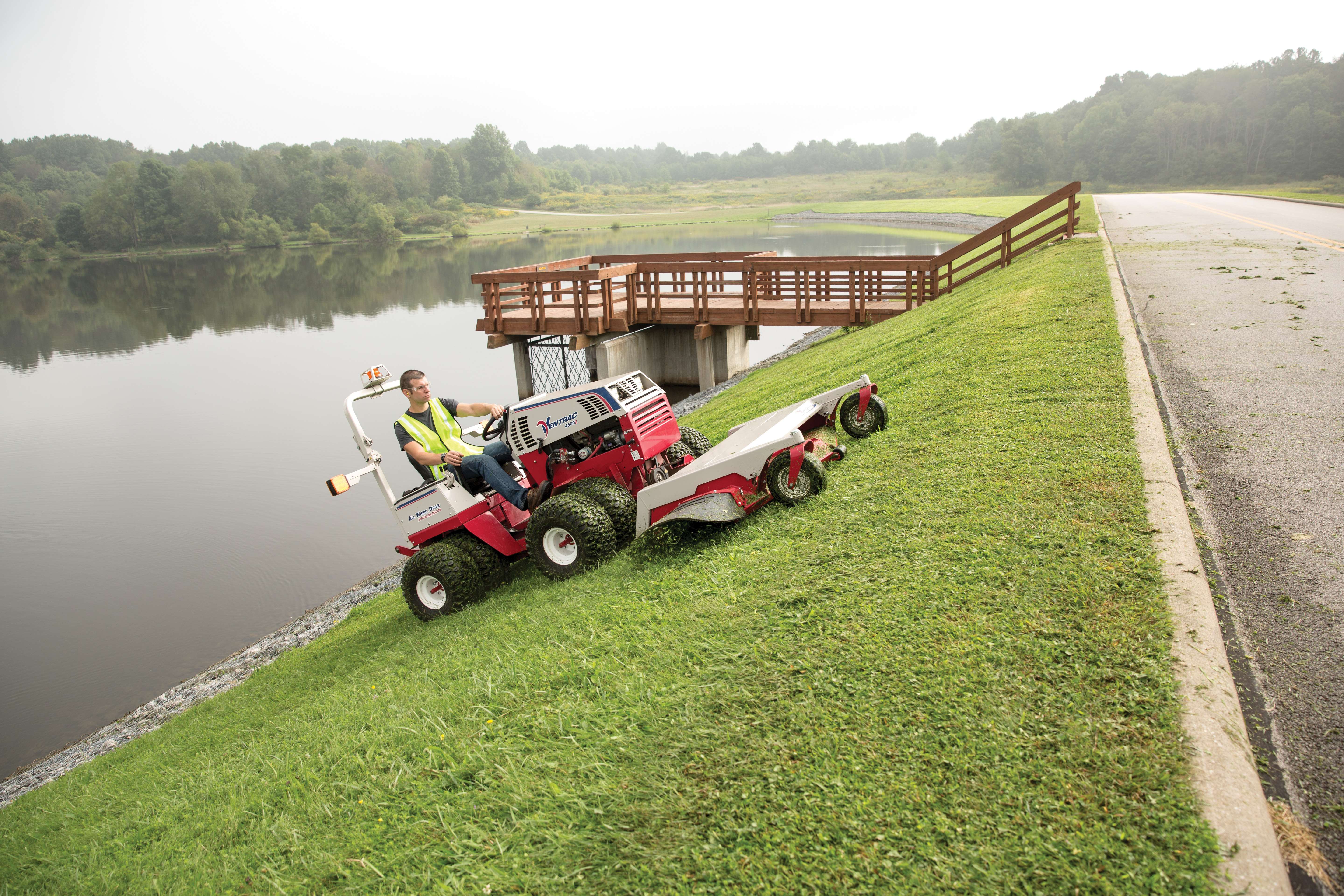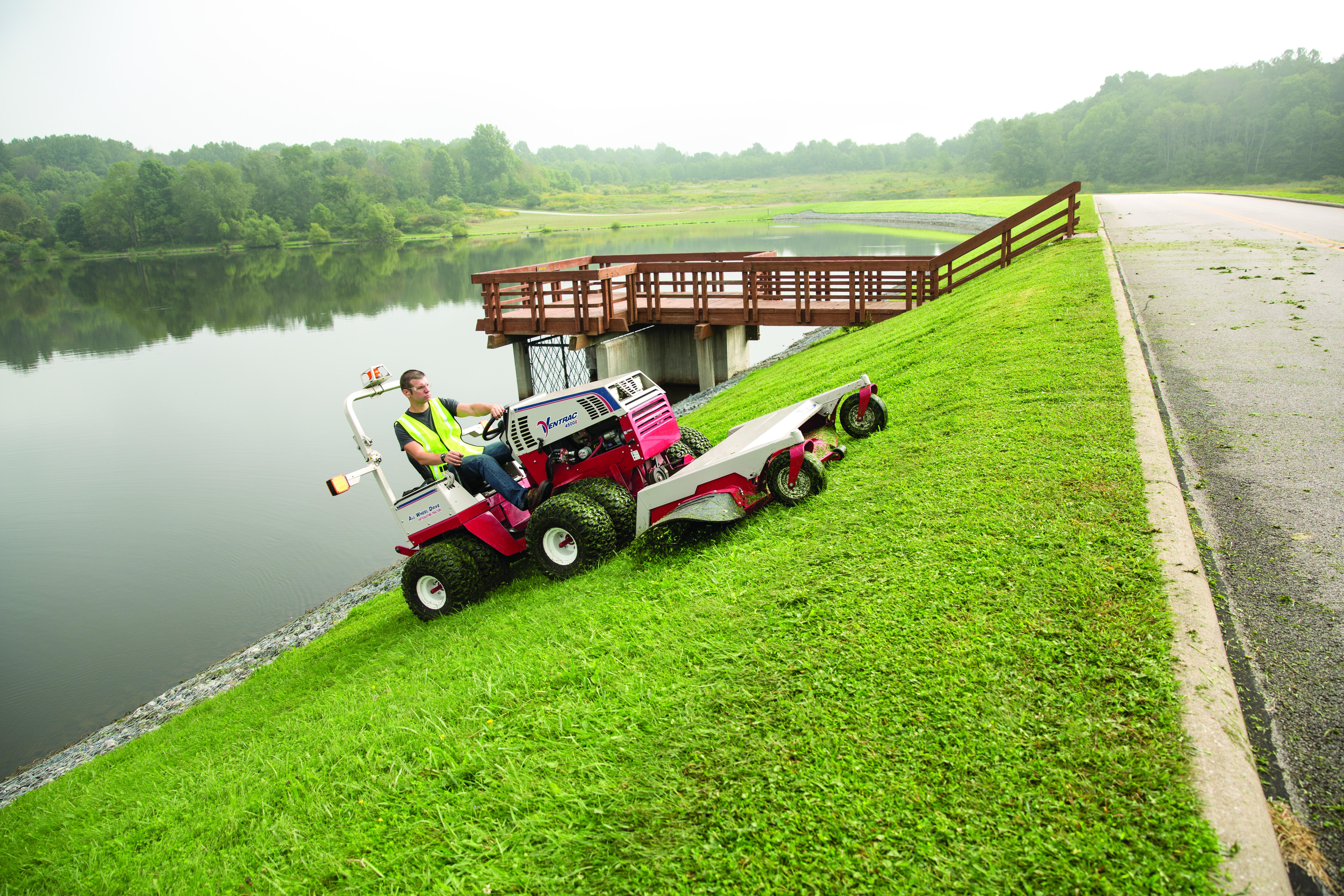 | Description | Seen here fitted with optional dual wheels, the 4500 can navigate hillside mowing delivering an even cut. |