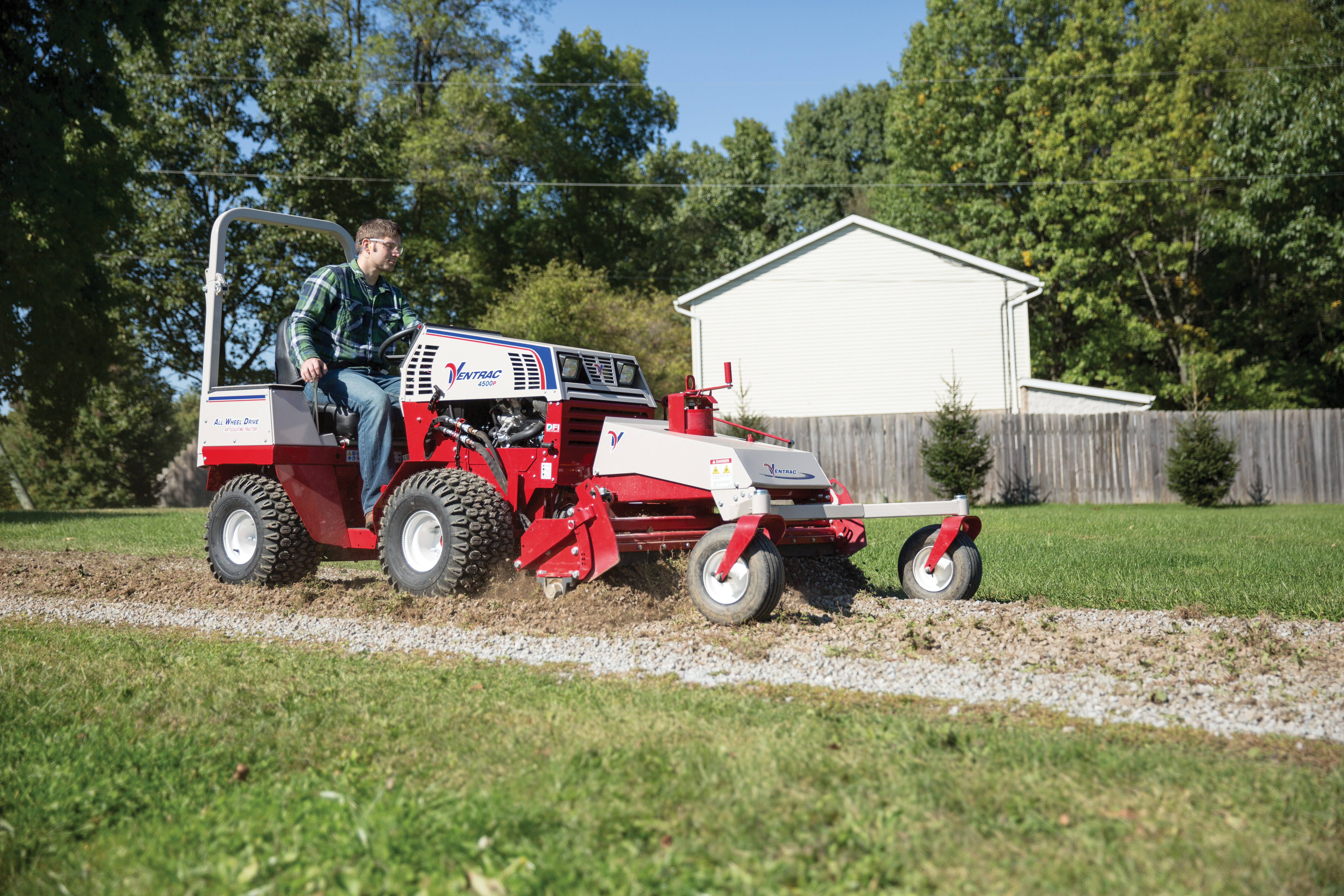| Title | Ventrac 4500 with Power Rake in driveway |