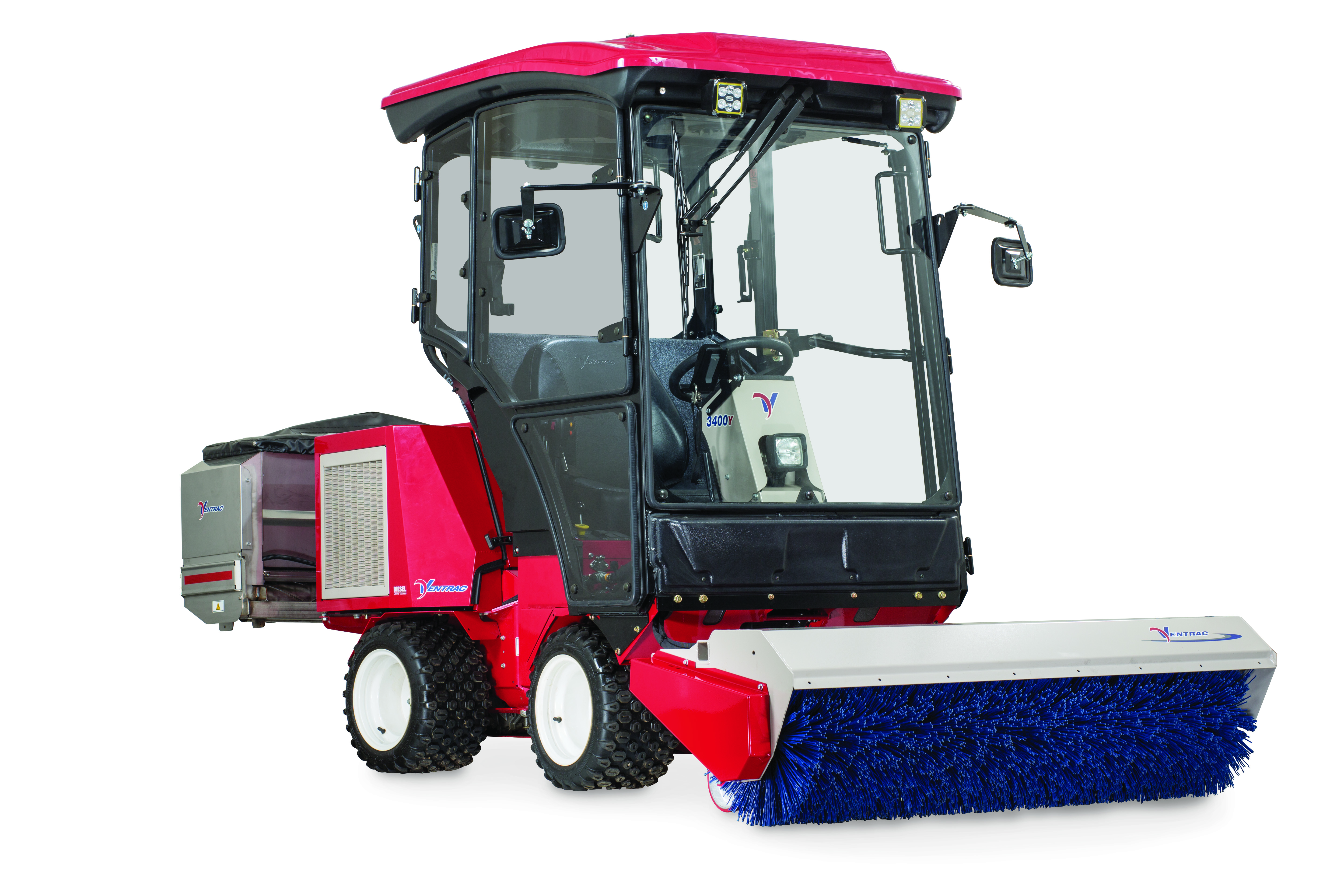 | Description | The Ventrac 3400Y shown here with Power Broom, enclosed heated cab, and Drop Spreader. |
