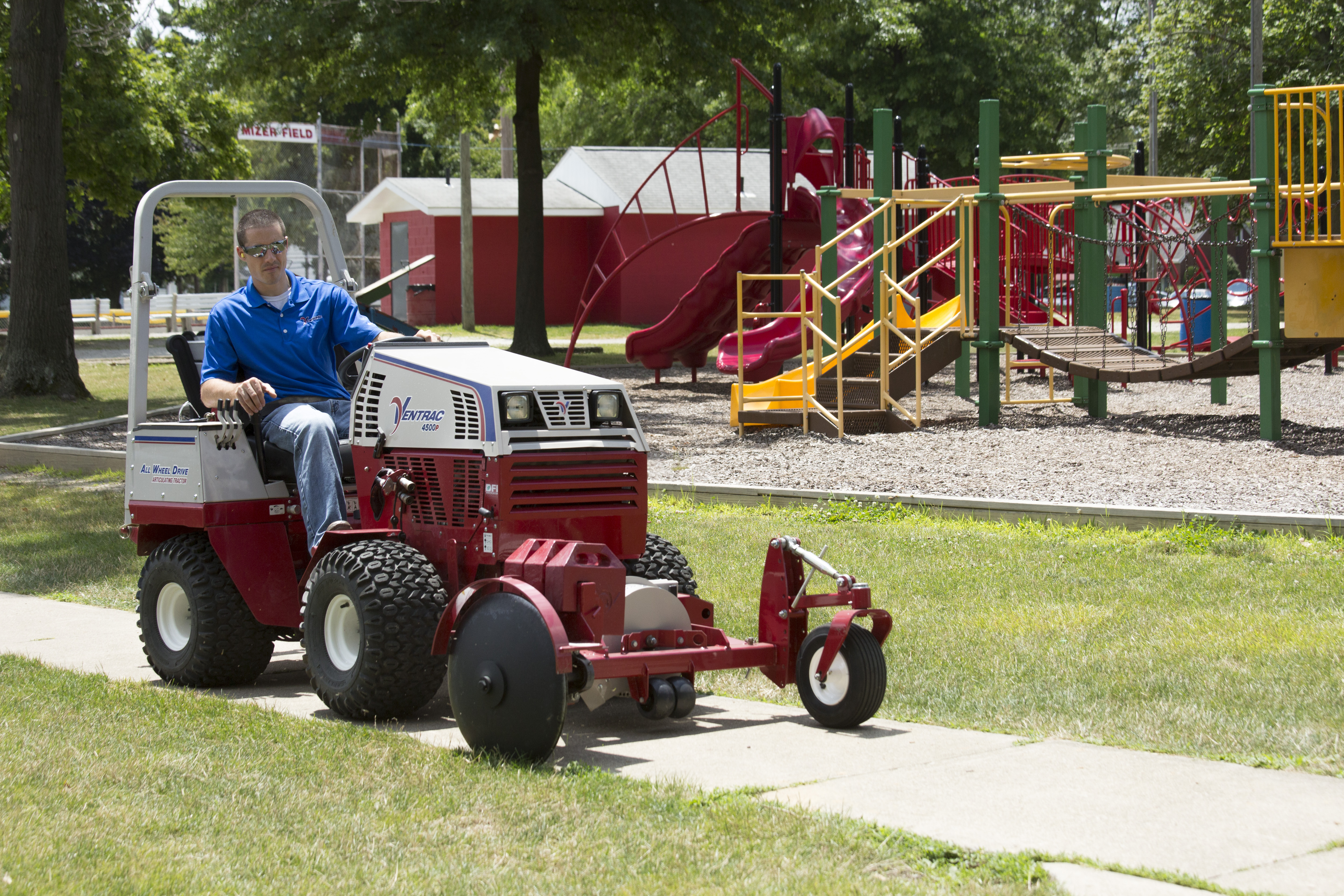Ventrac 4500 using 20 inch Edger - Shown with optional weights to help maintain constant down pressure for an even cut, helping up your game alongside municipal mowers.
