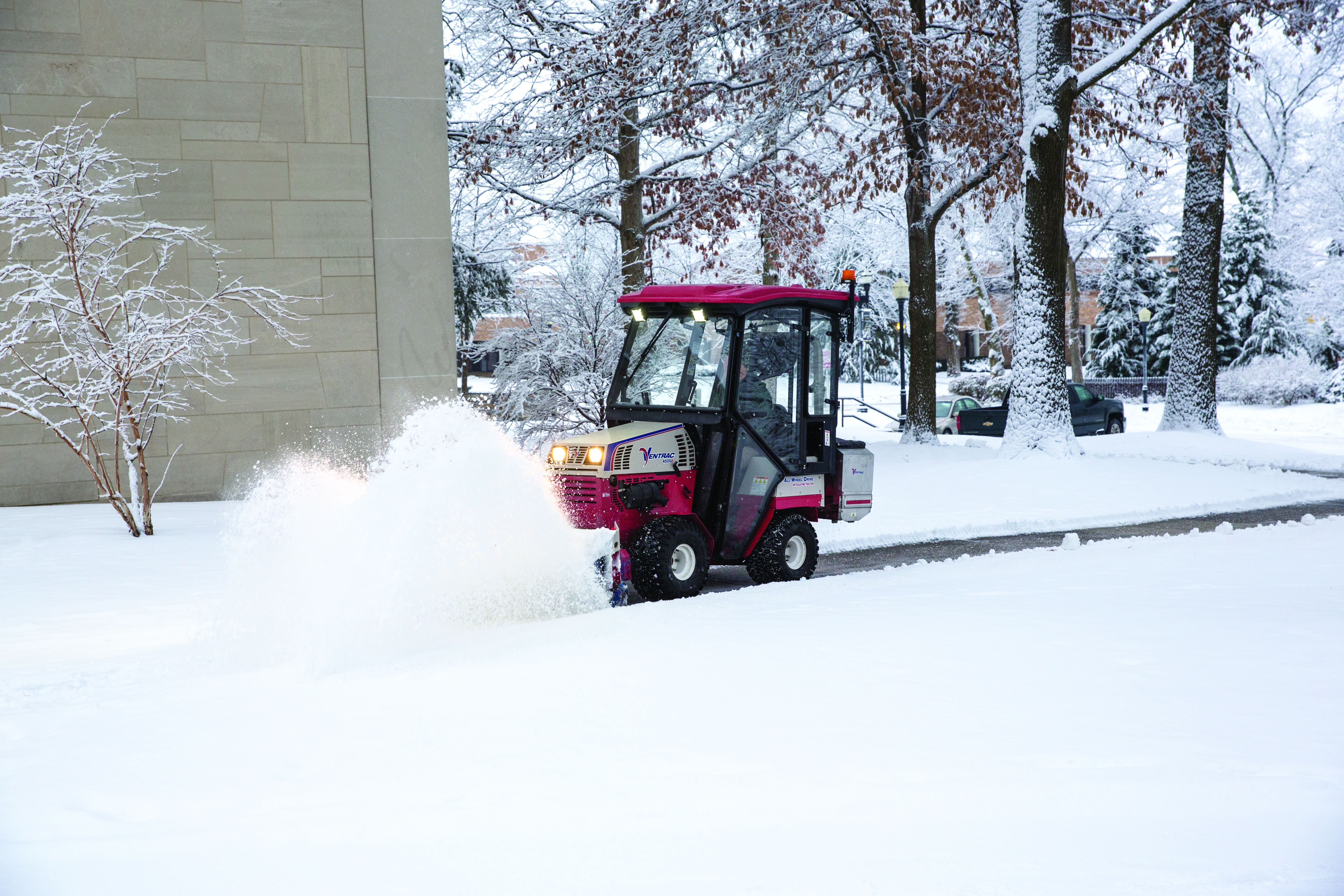 | Description | Operators can stay warm and dry while battling winter thanks to an enclosed heated cab, ideal for campus grounds management. |