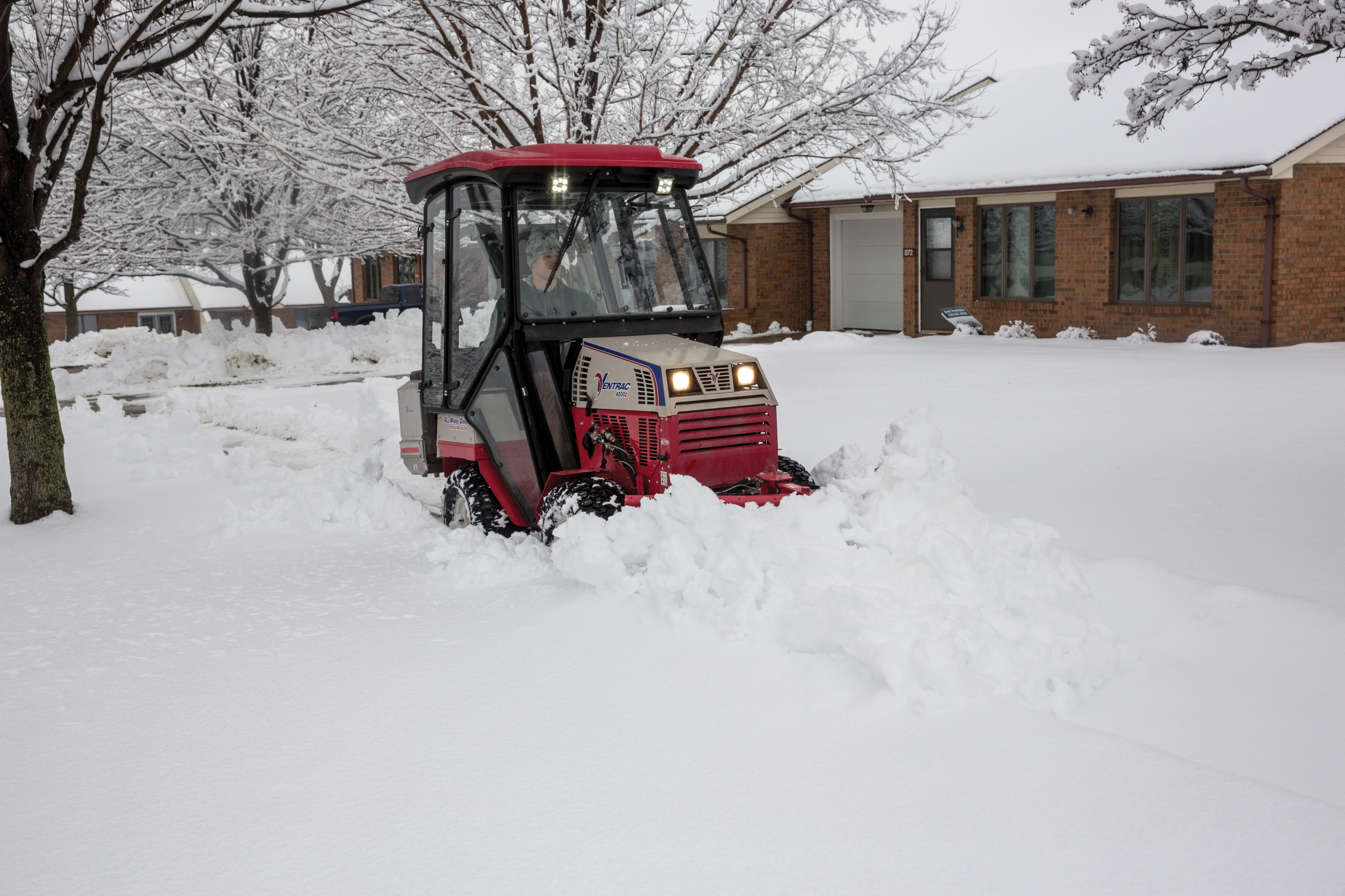 | Description | Outside it's cold, windy, and there's snow everywhere. Inside the fully enclosed cab it's warm and dry and the Ventrac 4500 with V-Blade moves snow out of the way. |