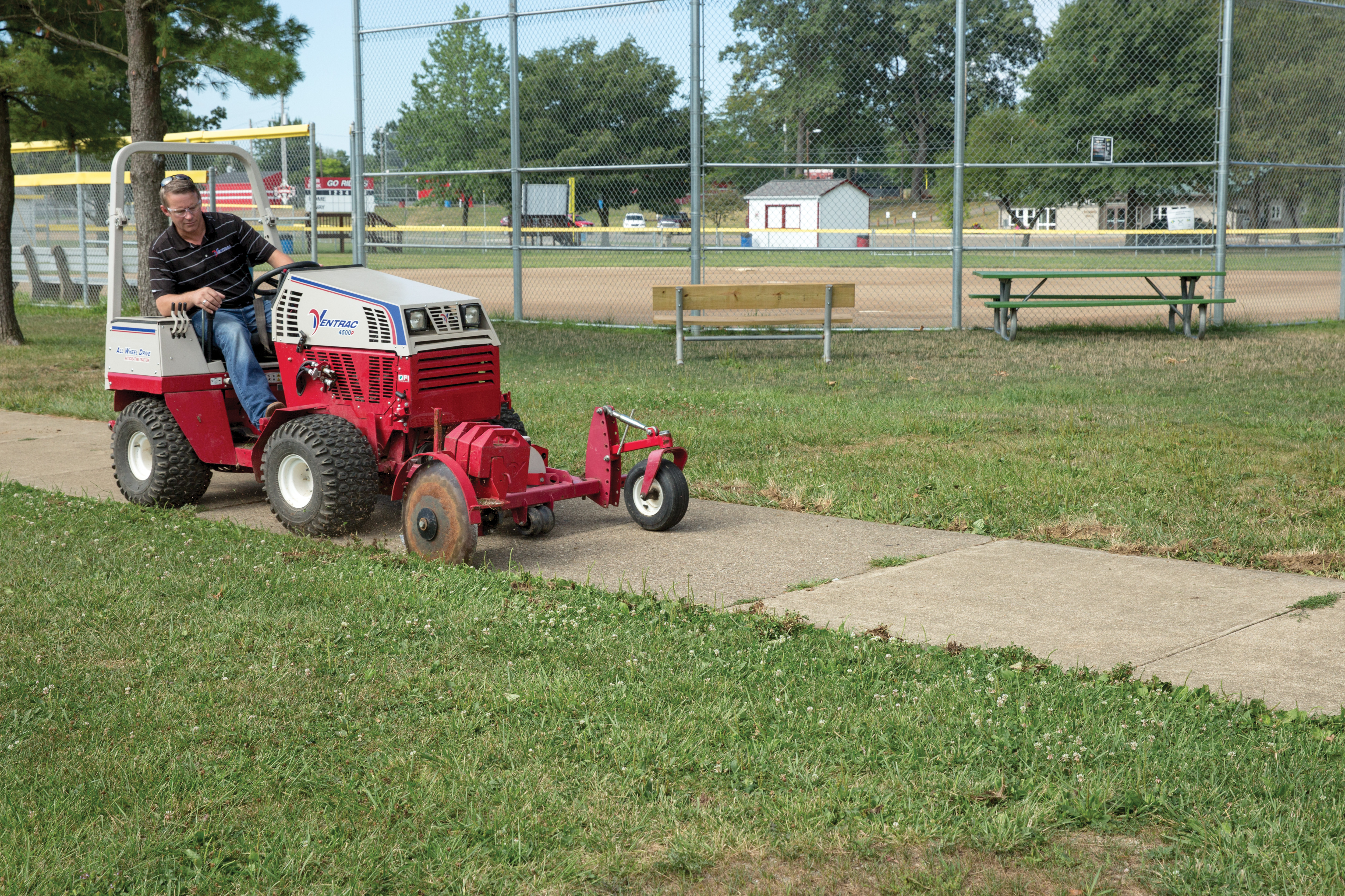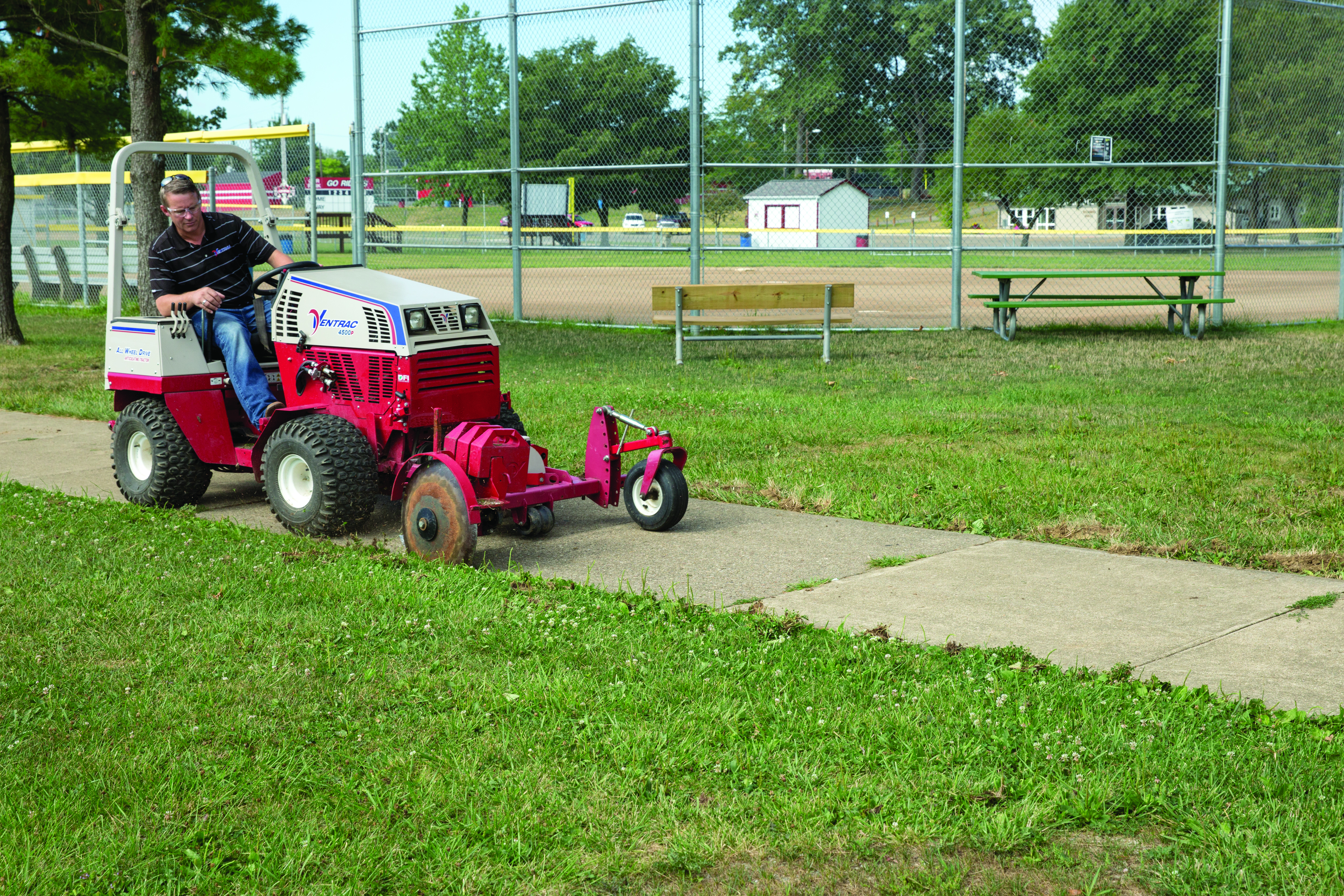 Ventrac 4500P using 20 inch Edger - The 20" Edger is large enough to cover more ground in less time, the perfect addition to municipal mowers.