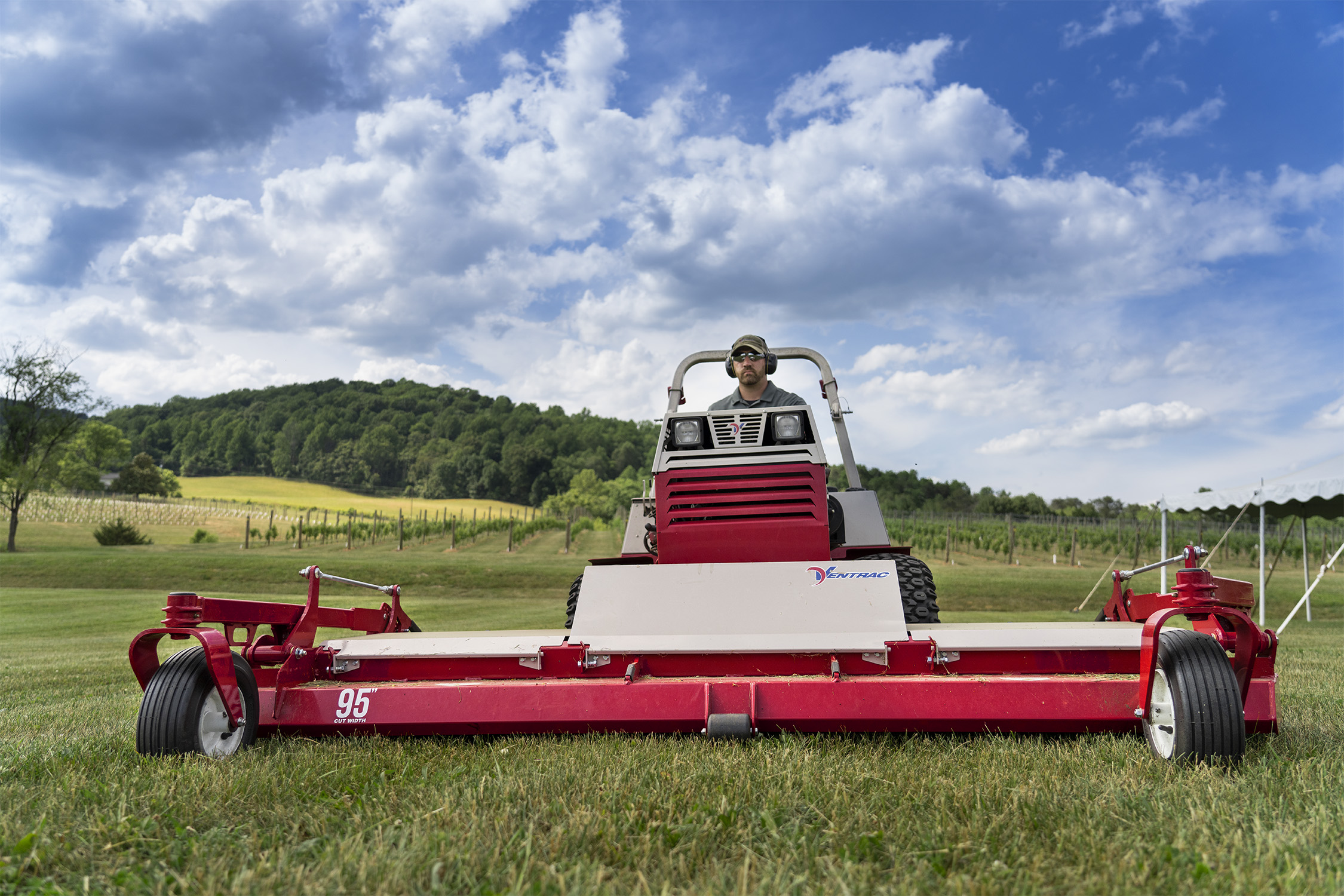 | Description | There is a smooth shell deck on the wide area mower to prevent material build up, great for vineyard mowing. |