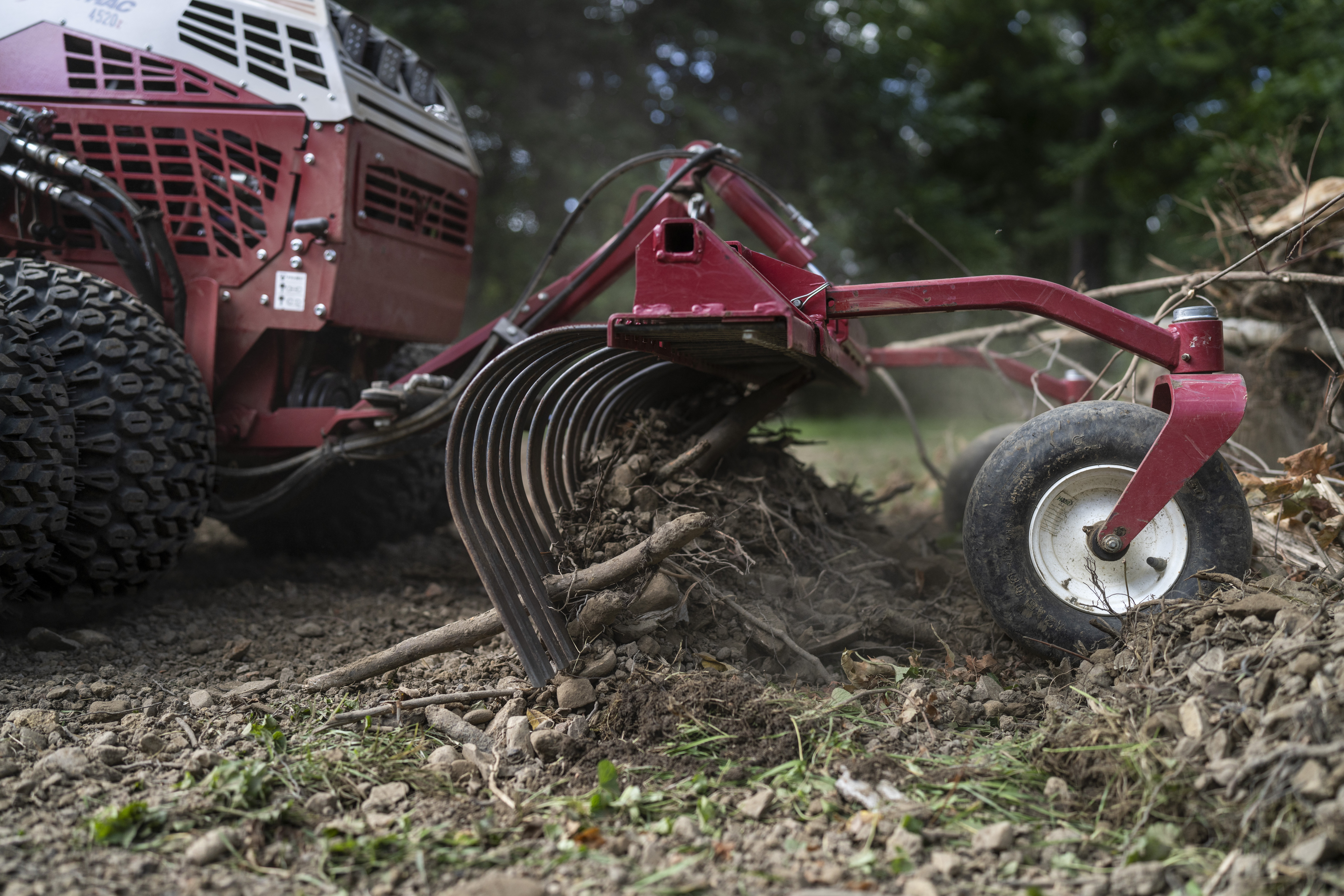 | Description | The KR502 is a front mounted rake which allows the operator to keep material from being driven over. |