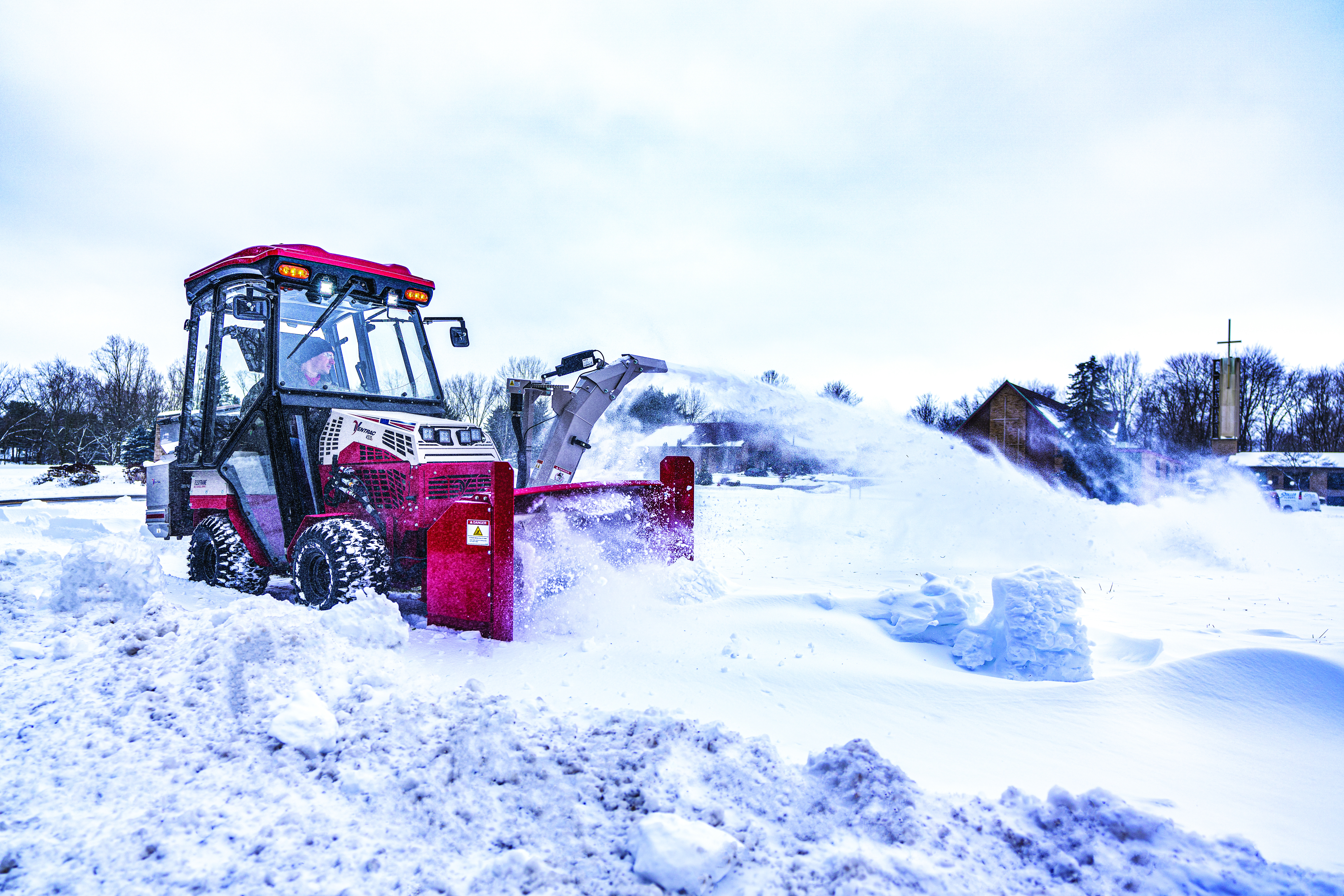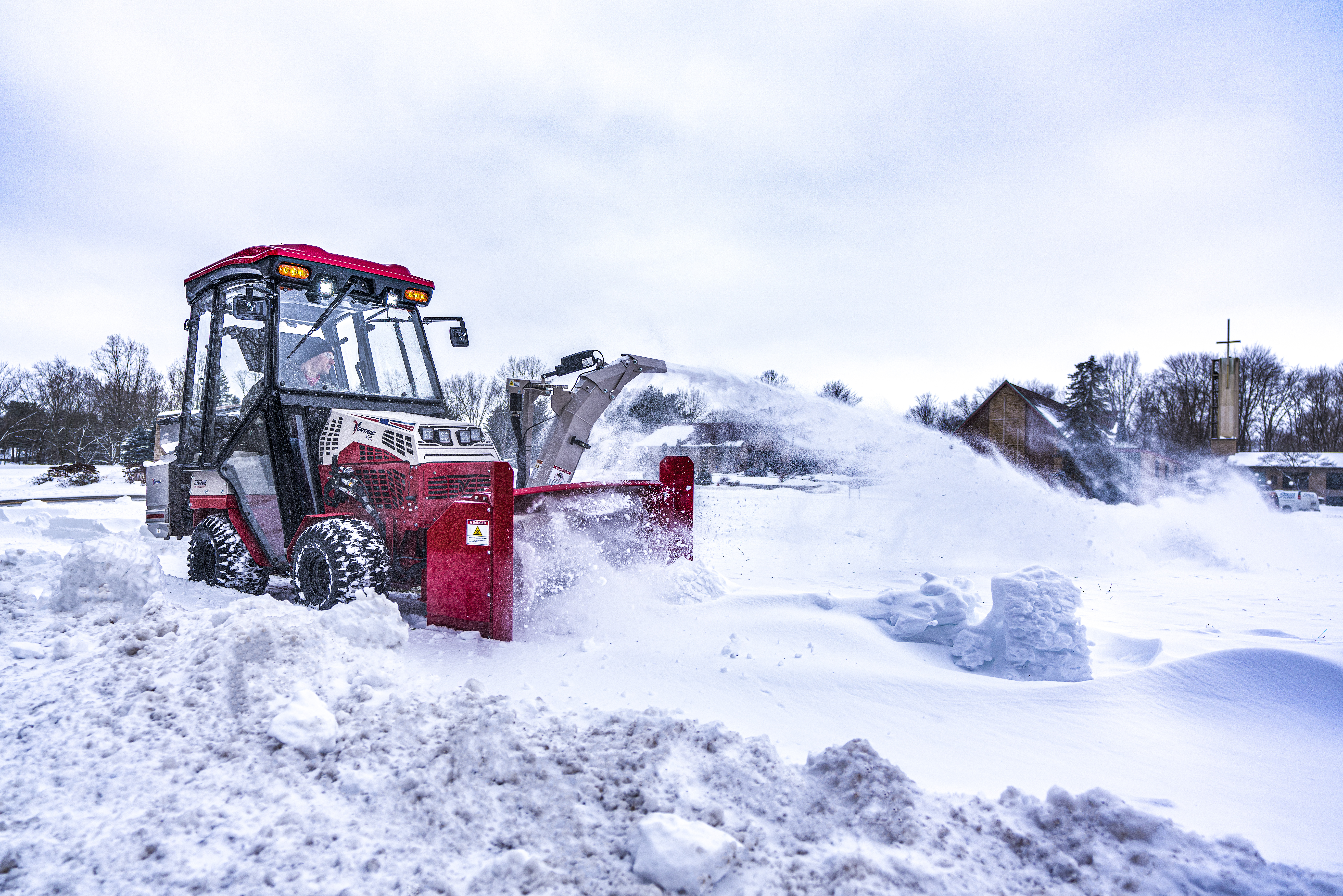 | Description | Ventrac Snow Blower clearing deep snow on sidewalks |