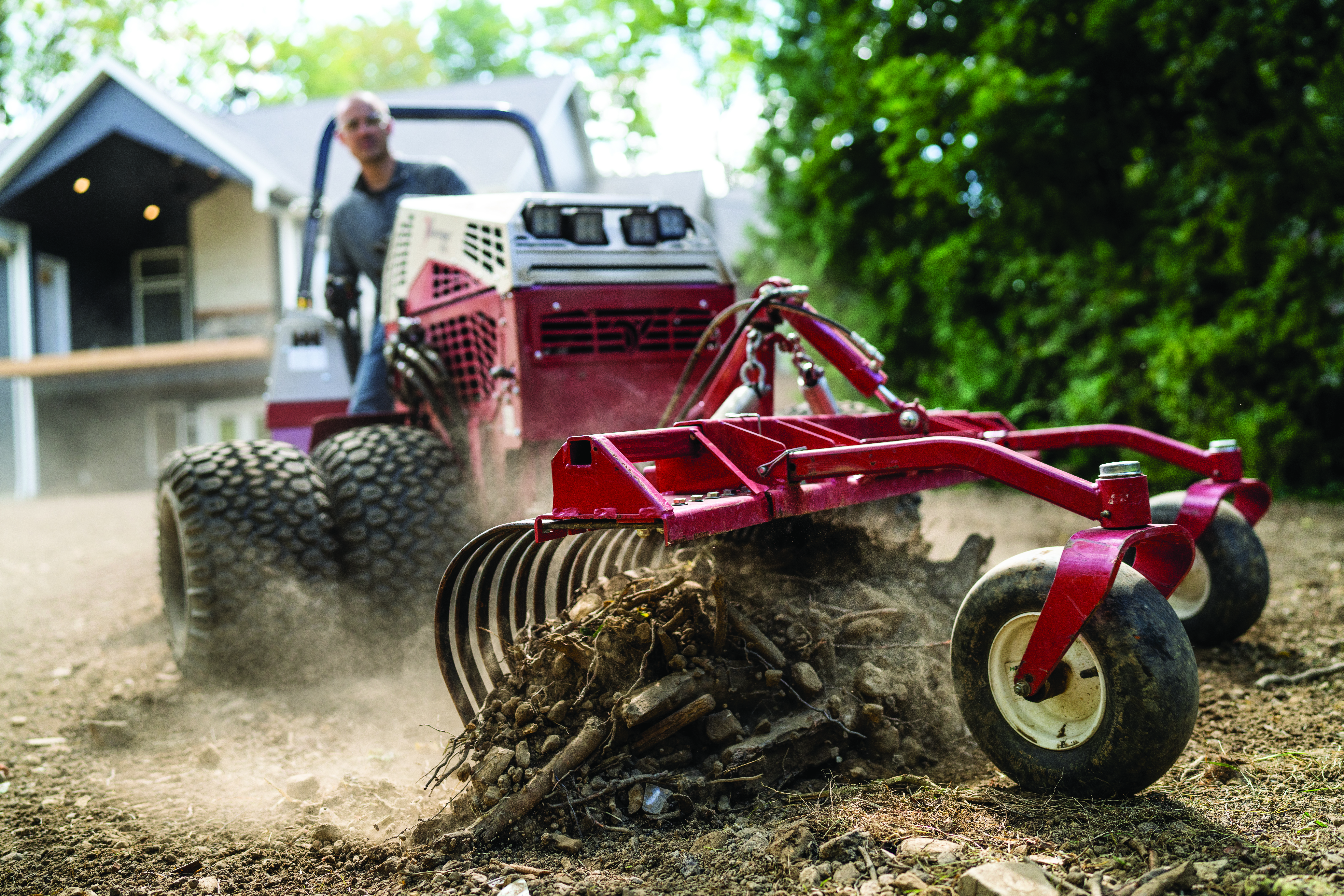| Description | Ventrac Landscape Rake being used to clean up dirt for a lawn installation at a new construction house. |