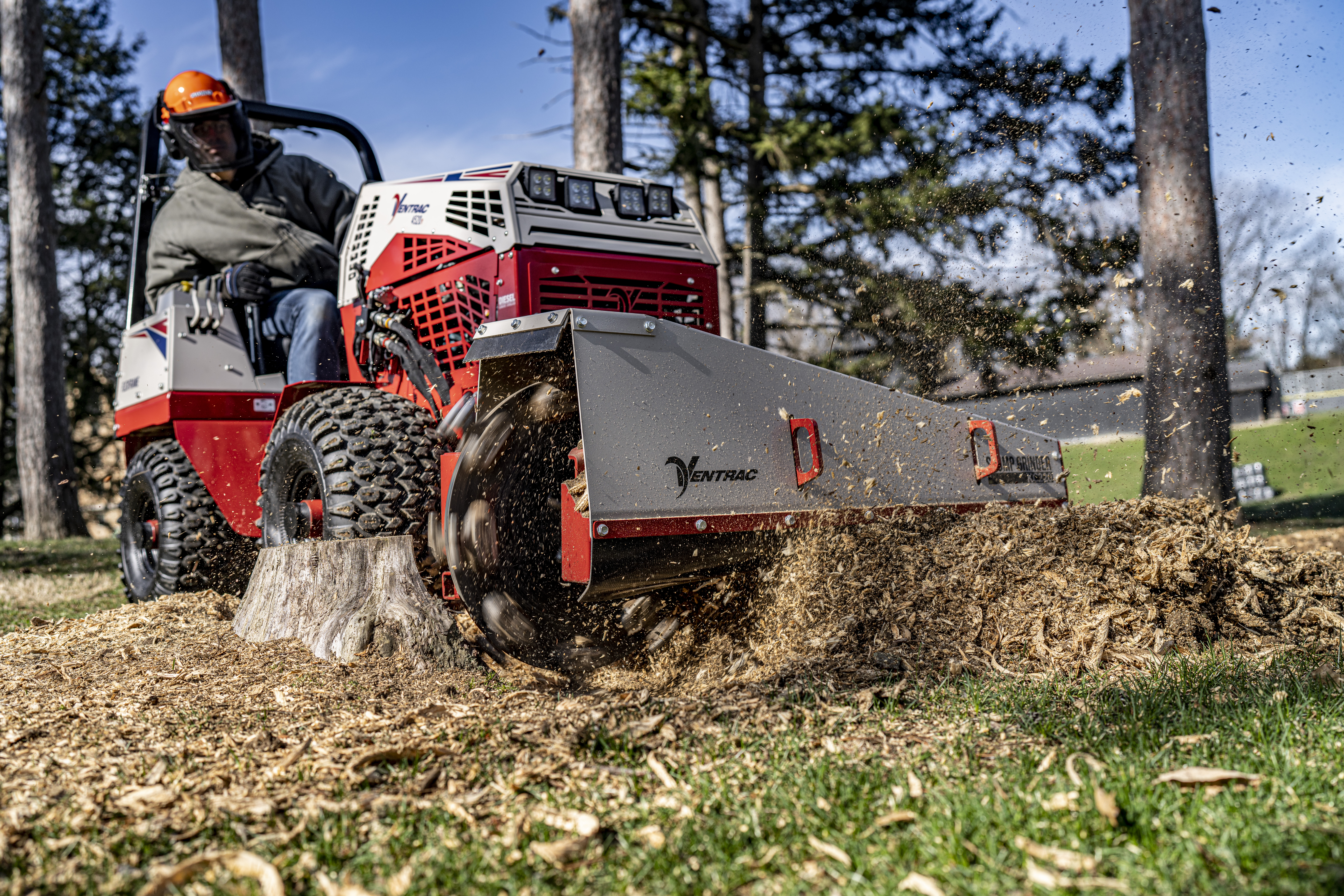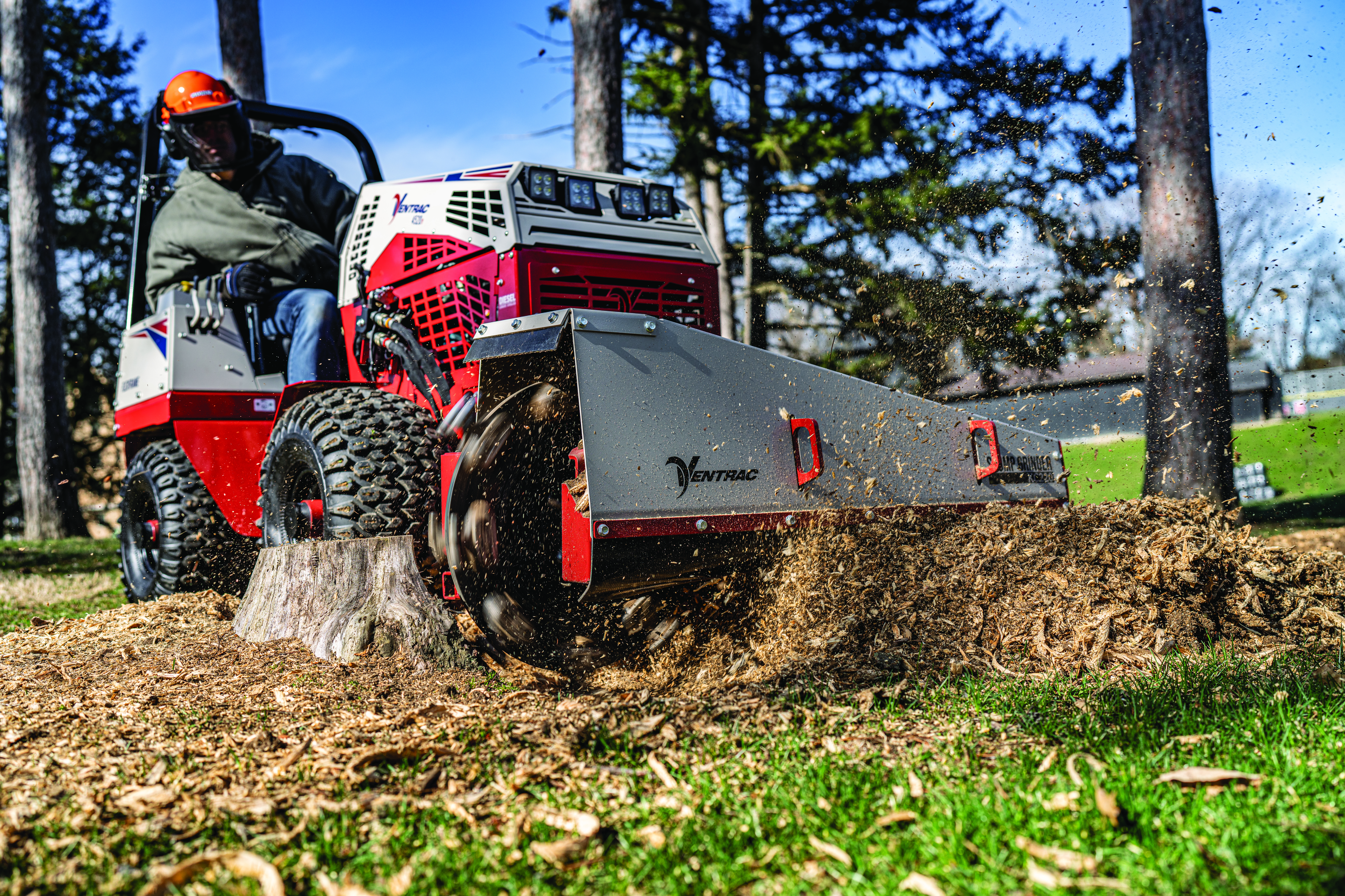 | Description | The new material blade which is operated by the hydrostatic hand controls, helps push debris away from the working area so landscape contractors can see more of the stump. |