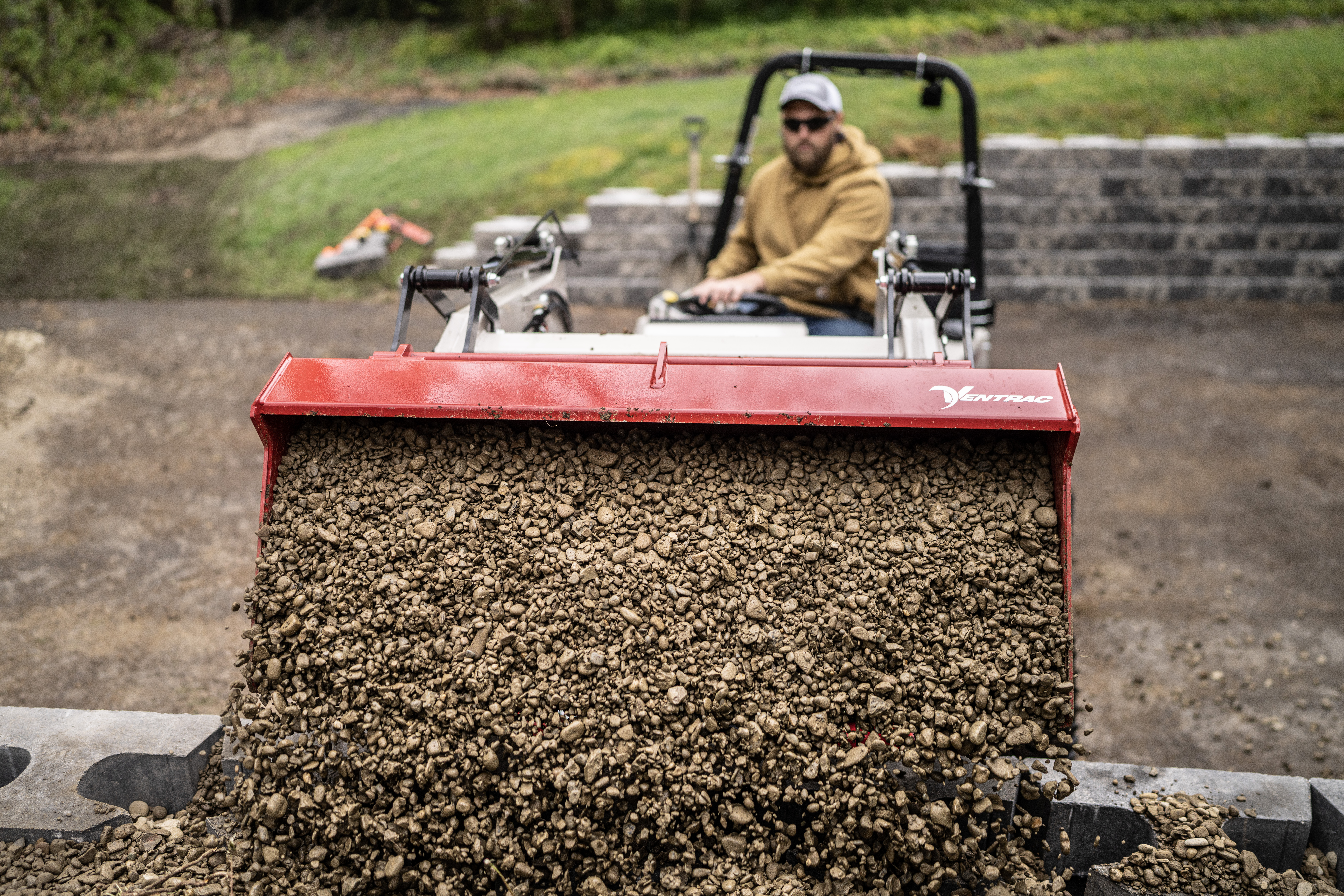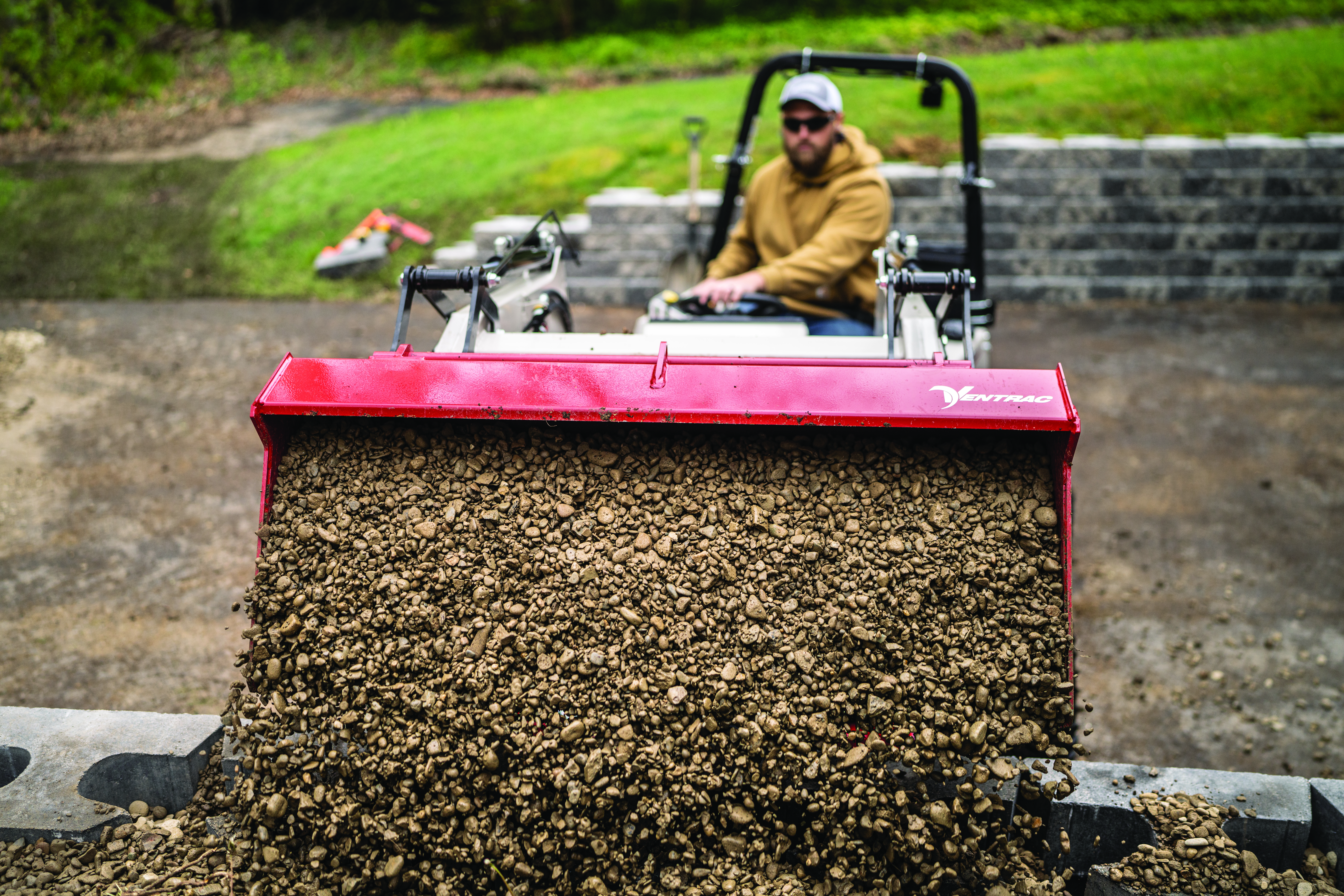 | Description | The Ventrac Loader dumping gravel. |
