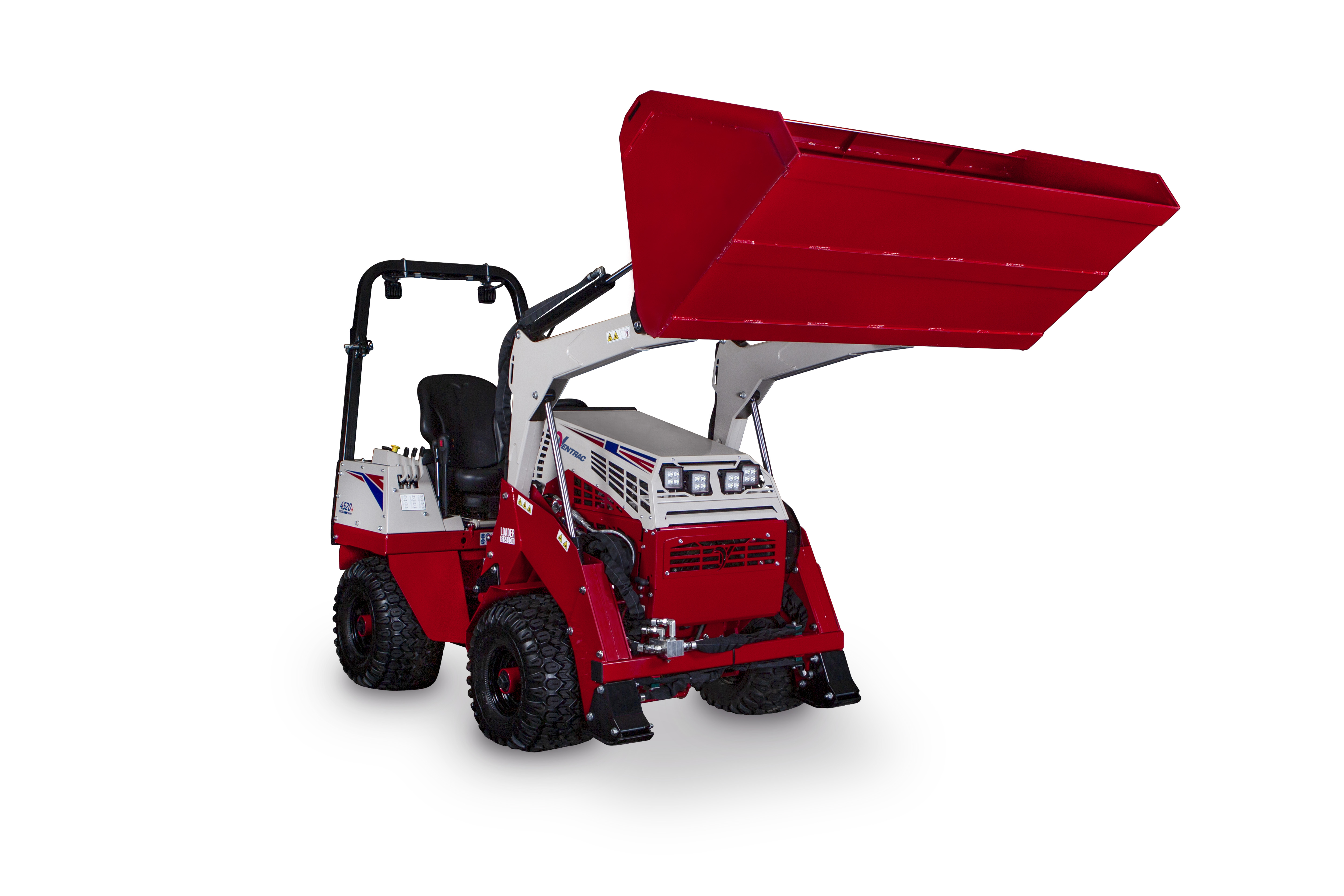 KM560 Light Material Bucket - The Ventrac Loader equipped with the Light Material Bucket lifted.