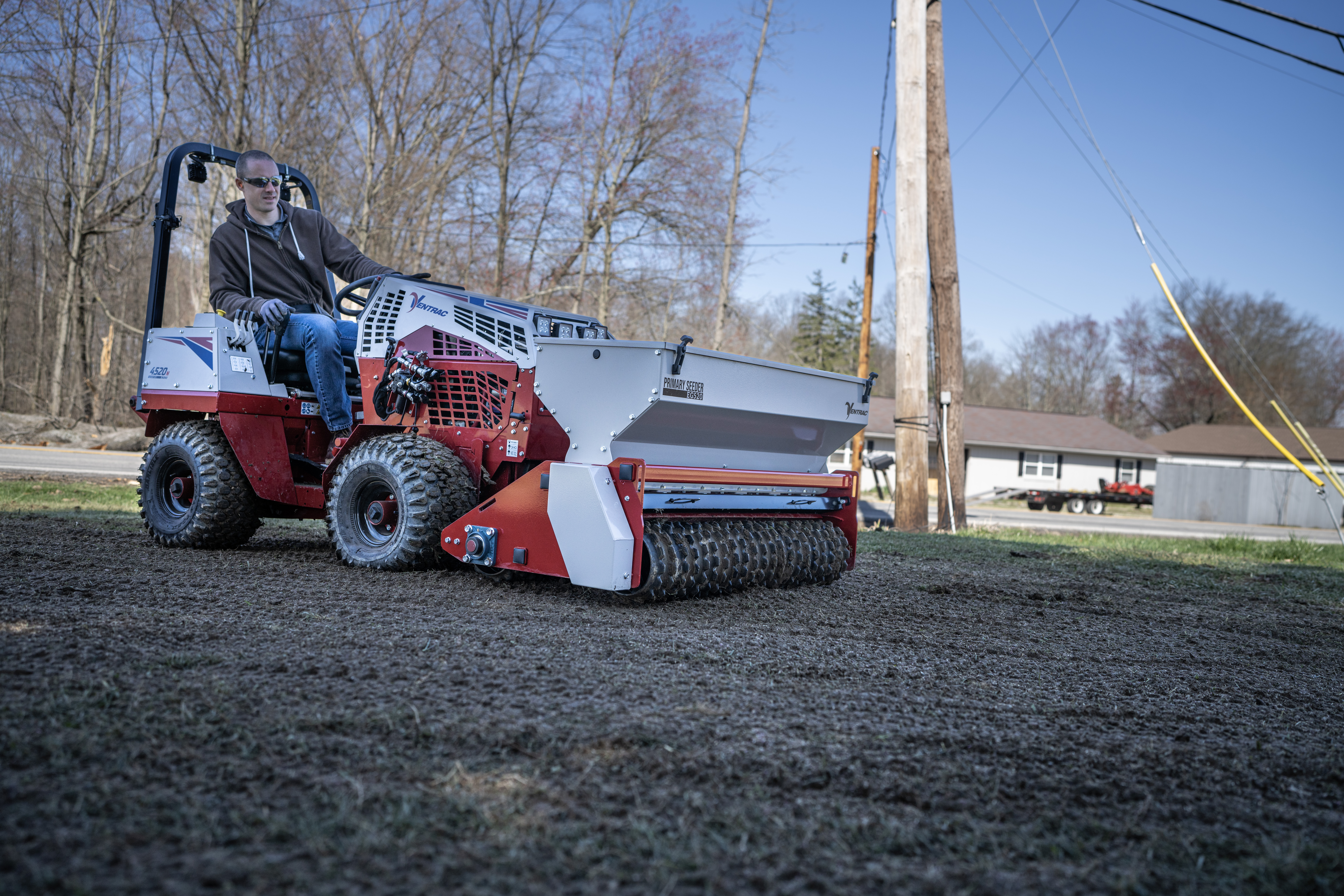 Ventrac Soil Cultivator - The EG520 Primary Seeder from Ventrac ensures perfect seed placement with a consistent and accurate drop rate. Featuring components like the Front and Rear Packer Rollers, Calibration Tray, and Precision Seed Funnels, it provides optimal seed-to-soil contact and easy adjustment for various grass seed types.