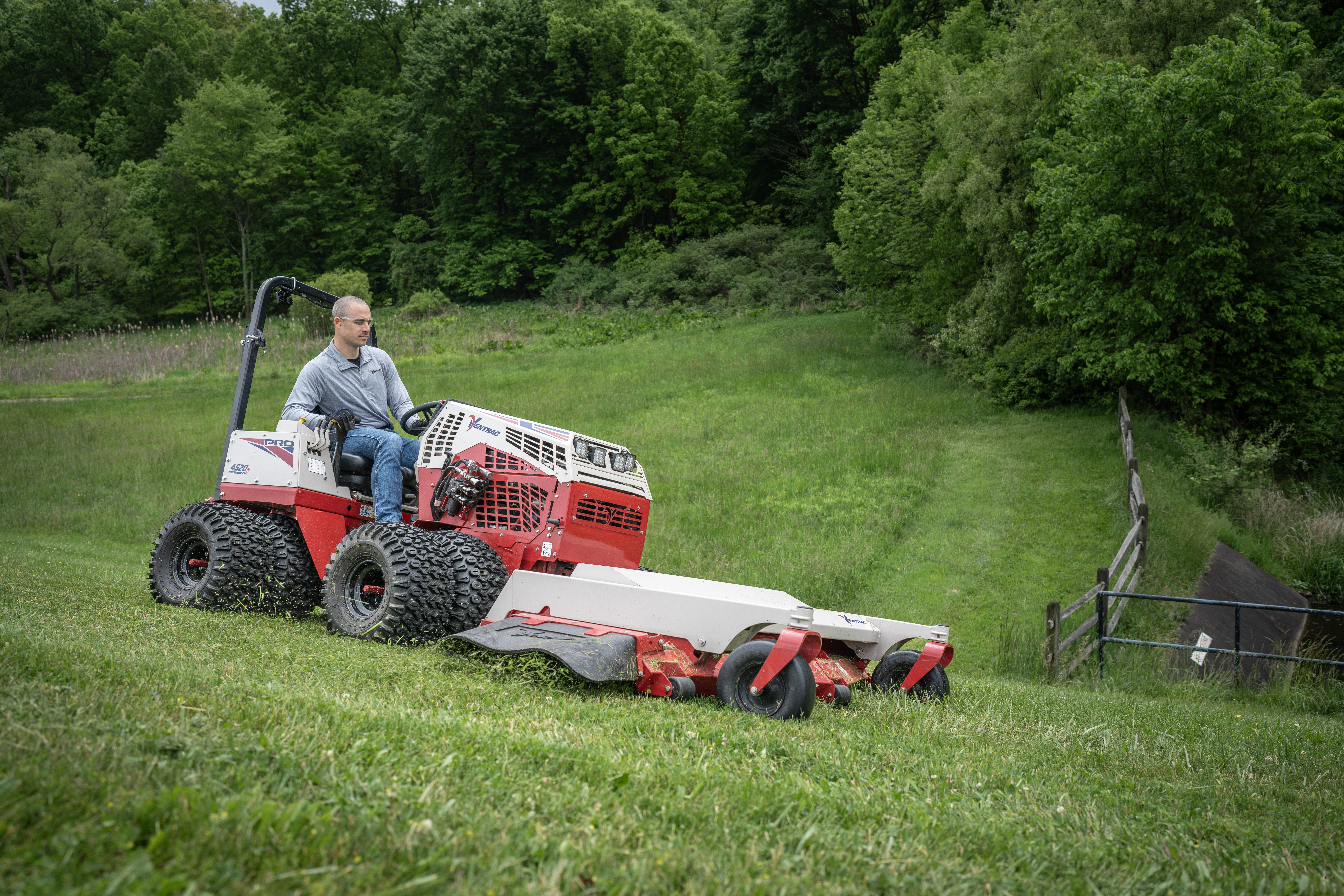 | Description | The Ventrac Finish Mower tackles the backside of a dam with ease, expertly cutting grass on a steep slope. Featuring quick height adjustments, rear rollers, and a robust steel deck, it delivers a beautifully striped finish even on challenging terrains. |