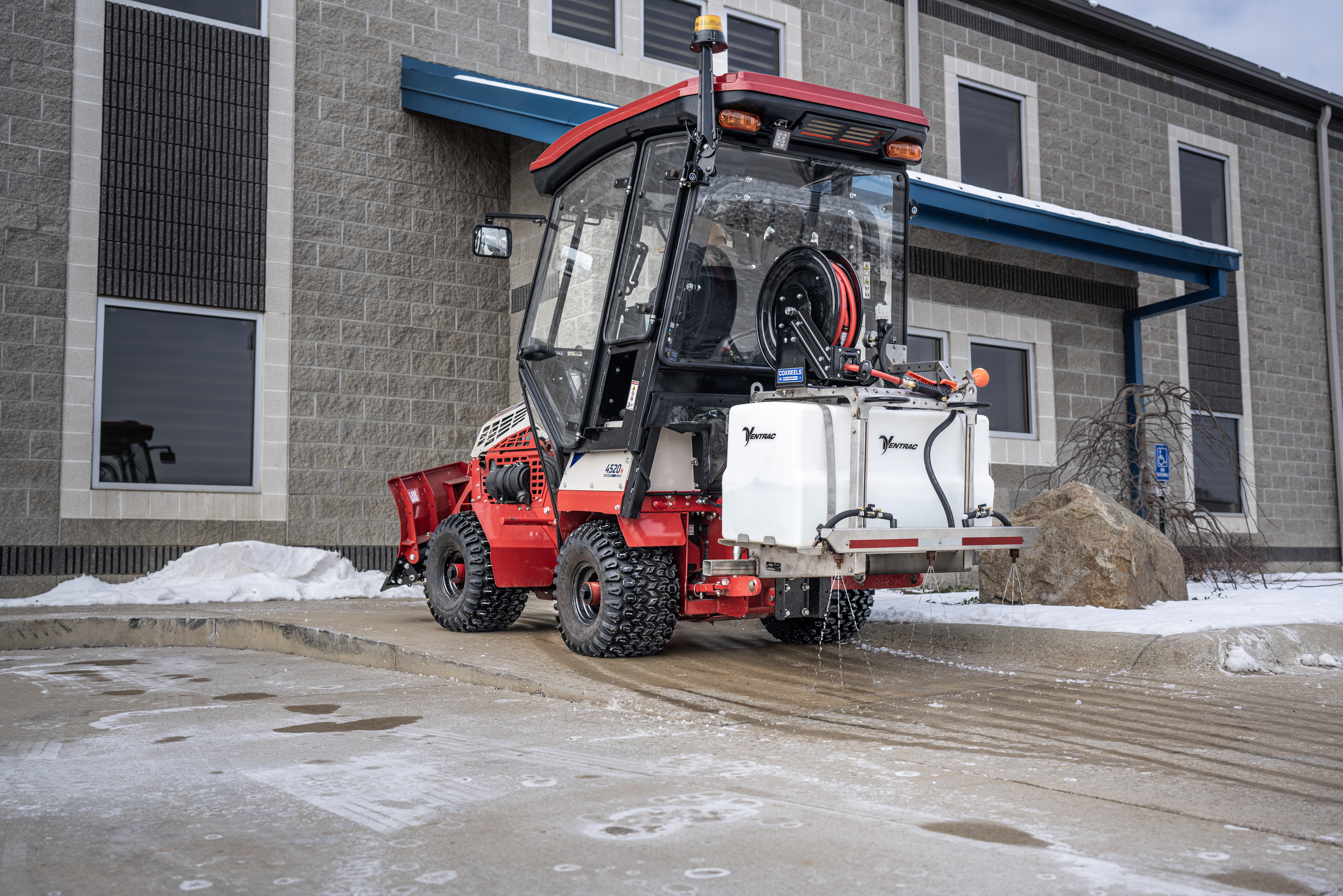 | Description | The Ventrac Brine Kit delivers precise liquid de-icing on sidewalks, utilizing its 35-gallon tank and integrated controls to maintain safe and clear walking surfaces. |
