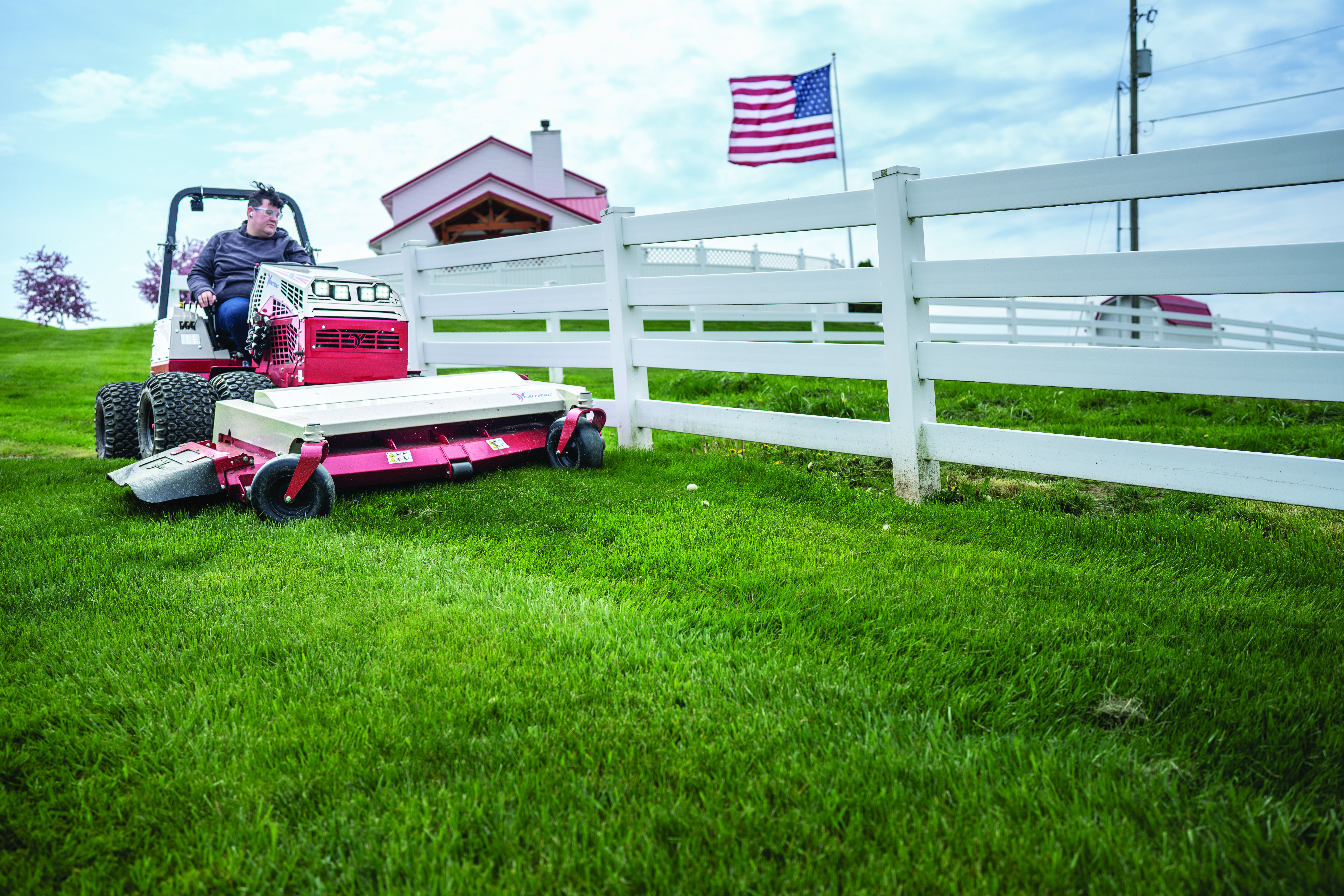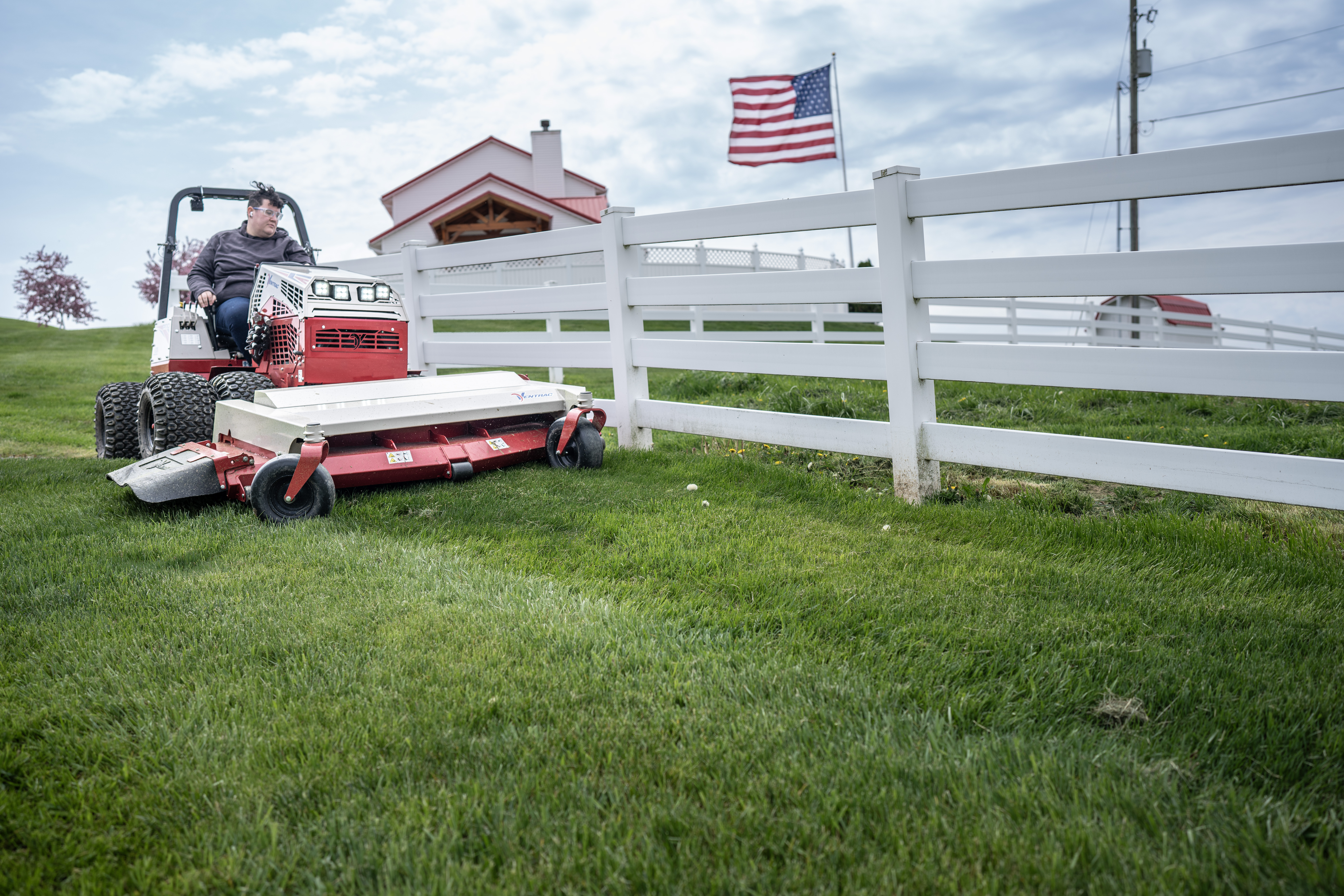 | Description | The Ventrac Finish Mower cutting grass along a pasture fence, keeping the property looking pristine. With its precision and stability, the Ventrac easily maneuvers around obstacles, delivering a clean, professional cut to maintain a well-groomed landscape. |